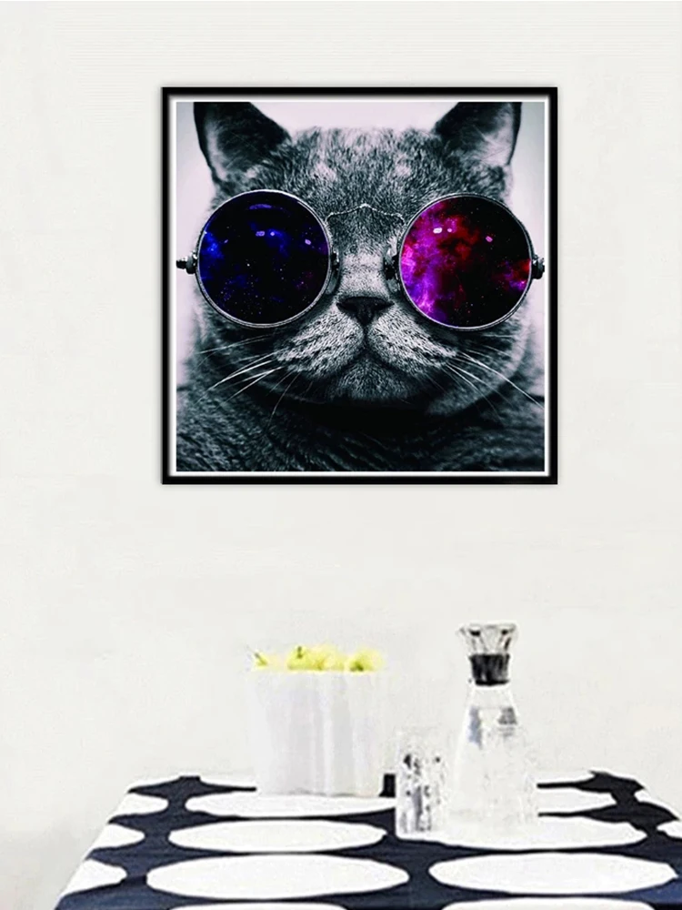 5D DIYdiamond картина стеклянная кошка Алмазная картина круглая дрель картина подарок мозаика Вышивка крестом