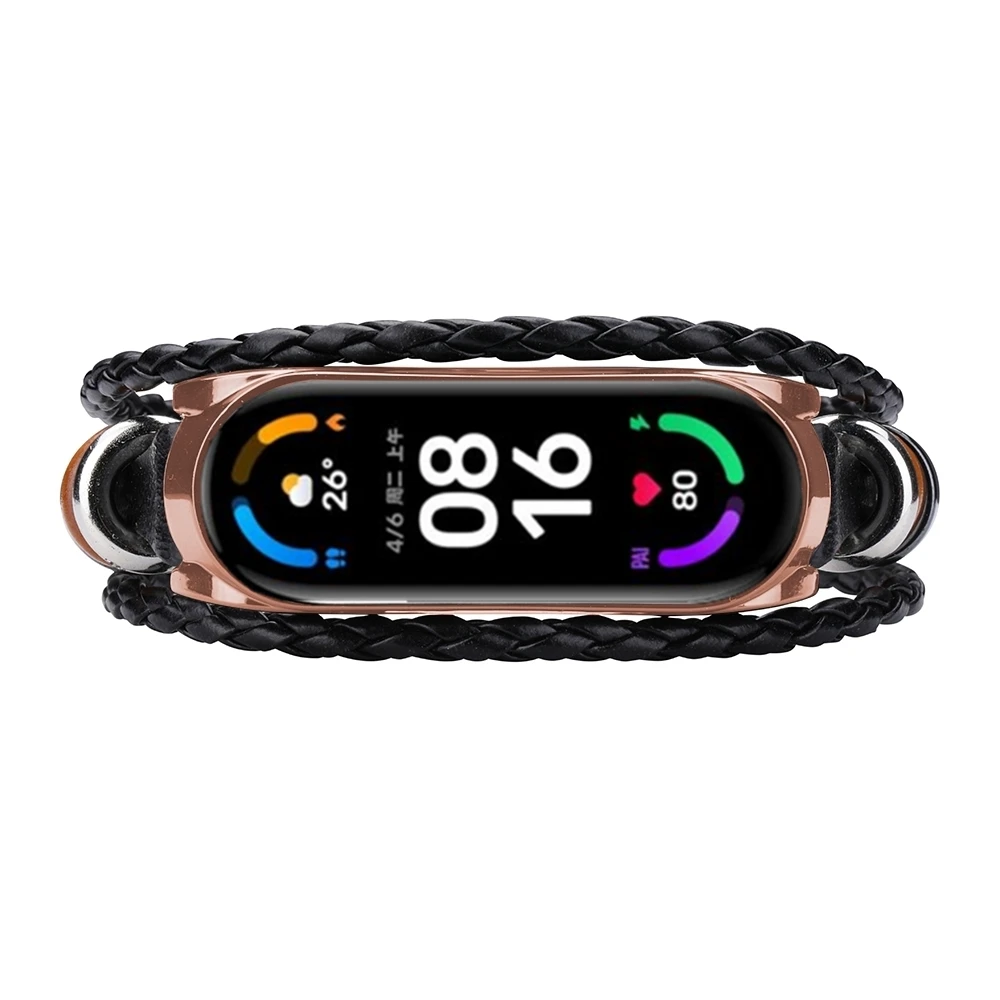 Сменный кожаный браслет с бусинами, Плетеный ремешок для Xiaomi Mi ...