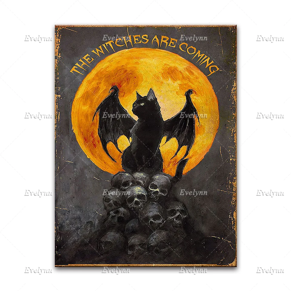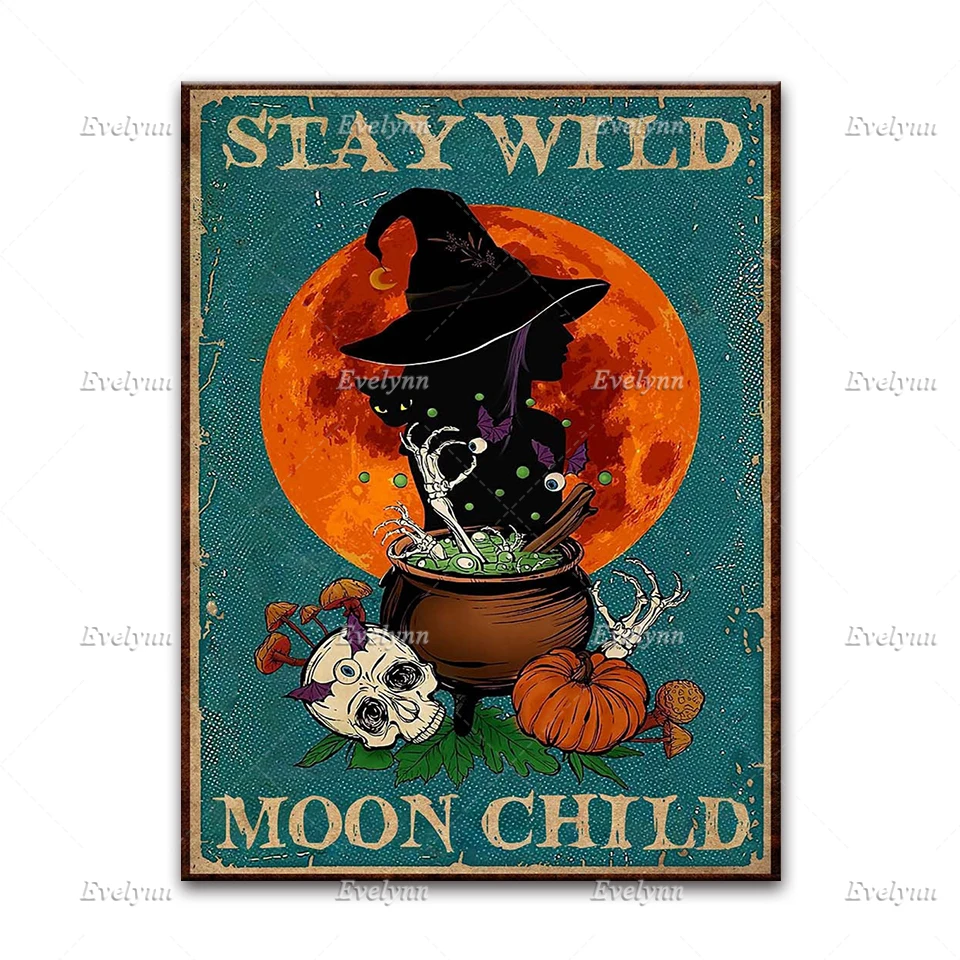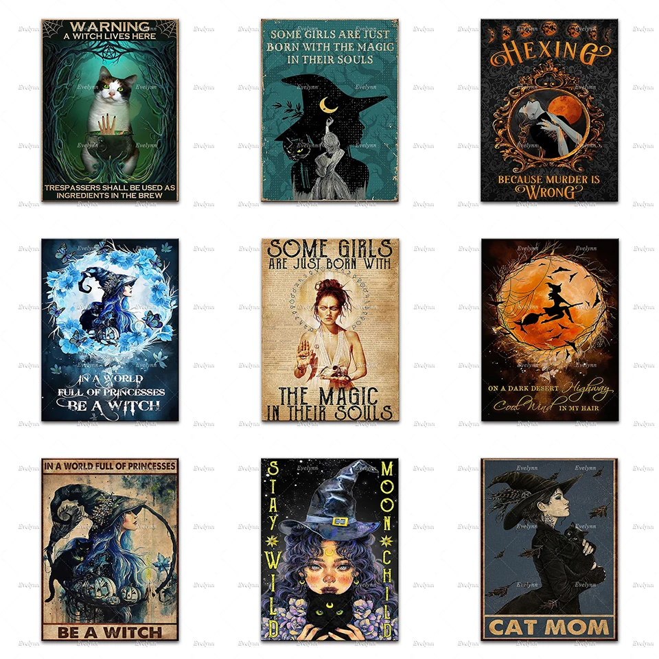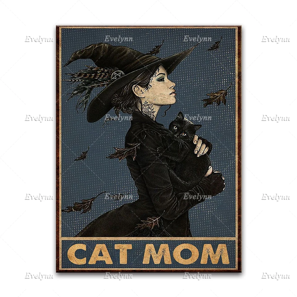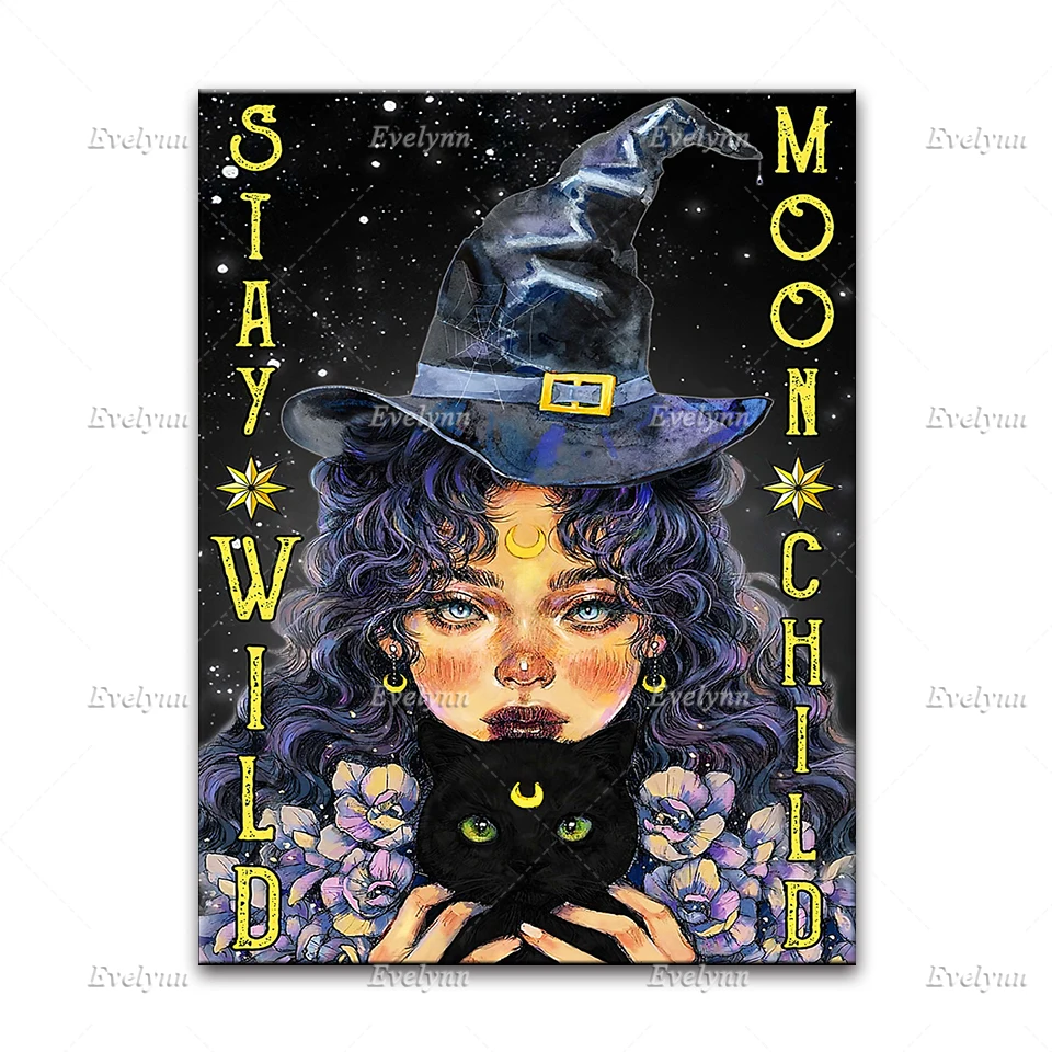 Хиппи ведьмы девушка и Черный кот влюбленные в мире полные принцессы быть плакатом, Хэллоуин настенные художественные принты домашний декор холст