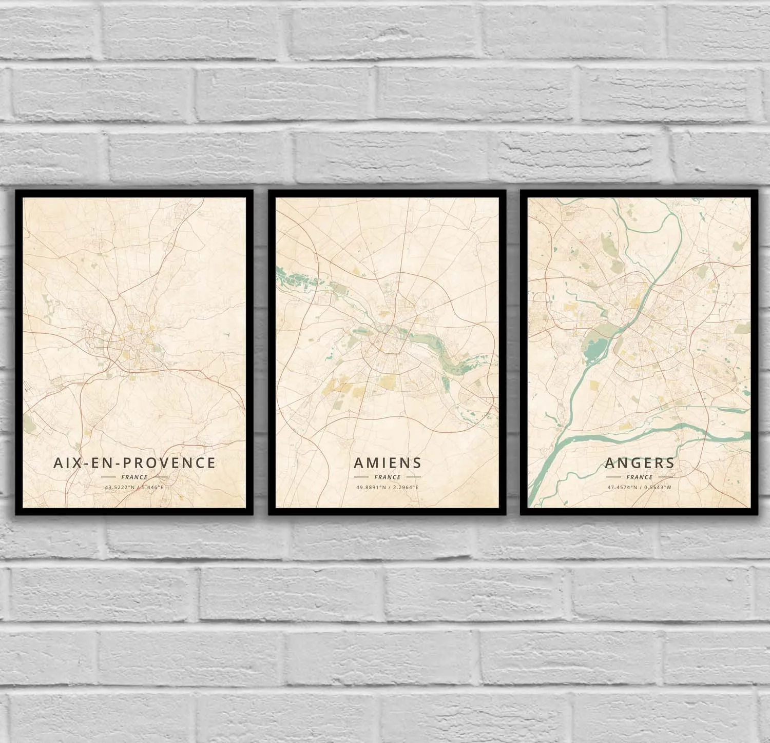 Плакат aixenпрованс Amiens Анже Besancon, Бордо, Брест, Кале, Кале, канны, кайен, склерорферранд, Дижон, Dunkirk, Франция