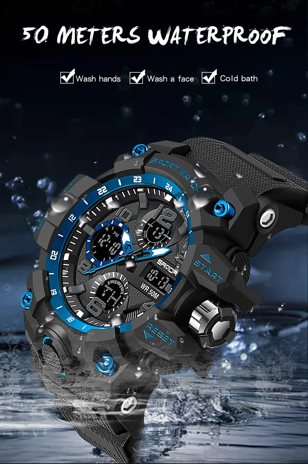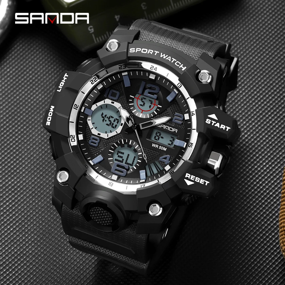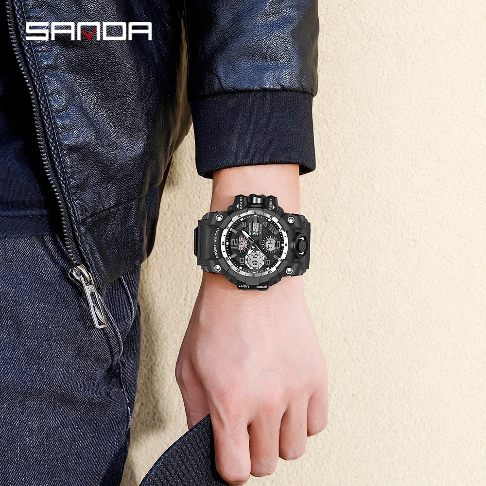 SANDA Брендовые спортивные военные мужские часы с двойным дисплеем кварцевые часы мужские военные водонепроницаемые наручные часы ударные цифровые часы