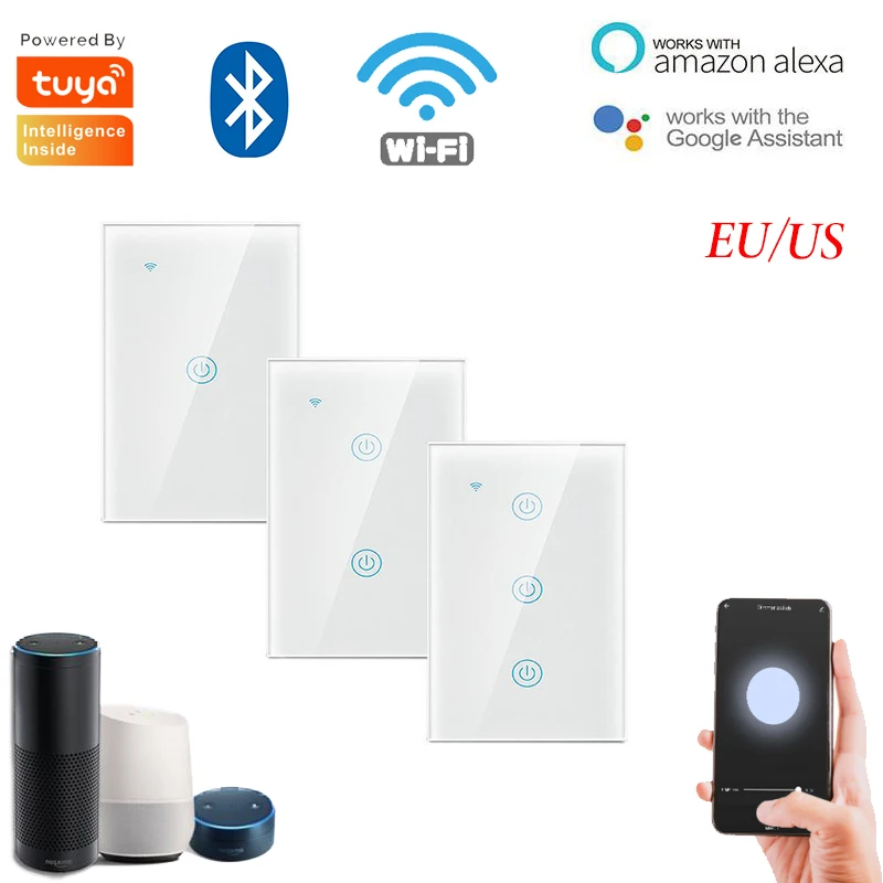 Умный выключатель Tuya, универсальный, стандарт ЕССША, с Wi-Fi и Bluetooth, 1-4 клавиши