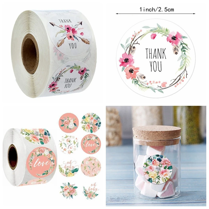 В переменного тока, 50-500 шт. наклейка спасибо для конверт этикетки для печати, круглыя розовая стикер ручной работы подарочная упаковка, милый стикер для канцелярских товаров