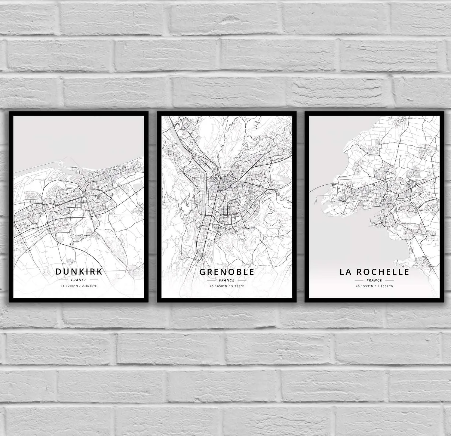 Dunkirk Гренобль Ла Рошель Лаваль Гавр Лилль лимузин Лион Марсель Metz Монпелье мулхаус Нэнси Франция карточный плакат