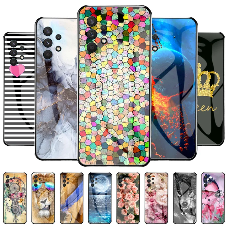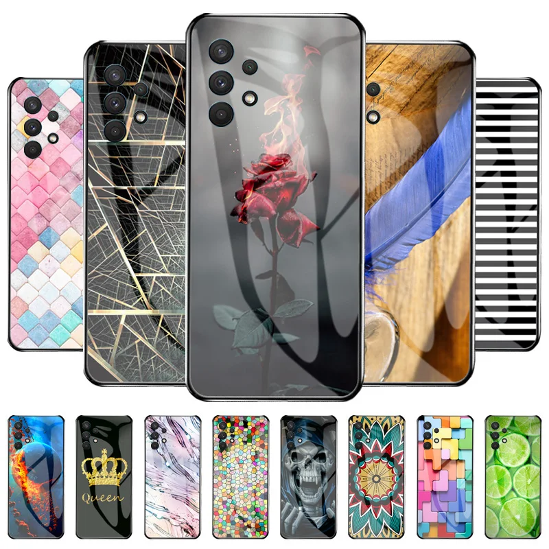 Чехол из закаленного стекла для Samsung A60, чехол для Samsung Galaxy A12, A10S, A11, A12, A6, силиконовый чехол-бампер с узором, чехлы, задние крышки