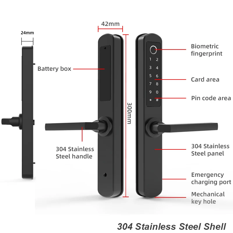 Непромокаемые (обе стороны)304 Корпус из нержавеющей сталиПоддержка приложения TT lock (bluetooth)Метод разблокировки 5Поддержка Временного пароляПодходит для 25 + различных размеров врезного замкаДля дверей разного типаУниверсальная как для правой, так и для левой двери