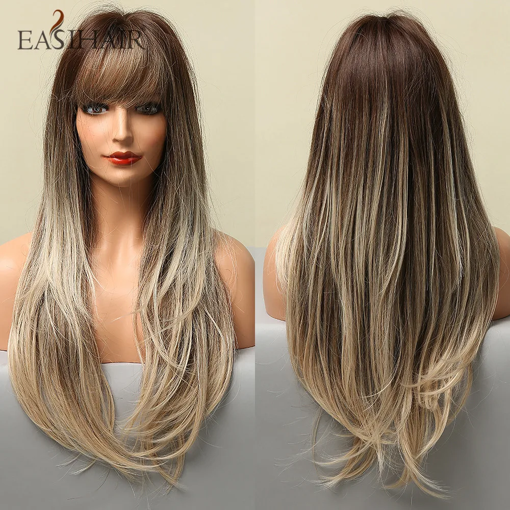 EASIHAIR длинные коричневые до светлые синтетические парики для женщин прямые парики с челкой натуральные волнистые парики с челкой парик термостойкий