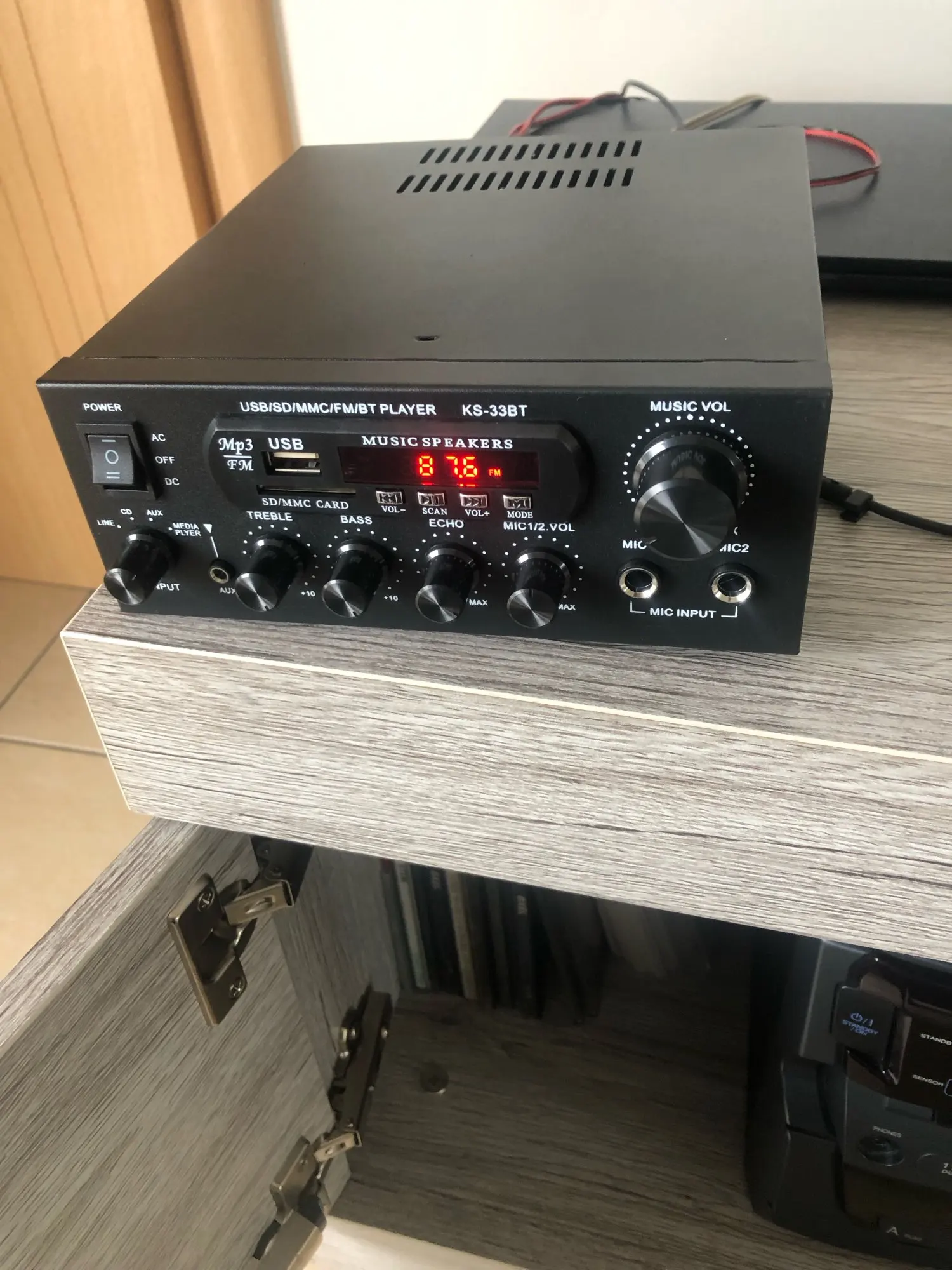 Усилитель неплохой, регулировка высоких и низких частот, а так же громкости производится плавно, без шипения и треска. При переключении, голоса с китайским акцентом нет, лишь короткий музыкальный звук. Приятный дизайн.