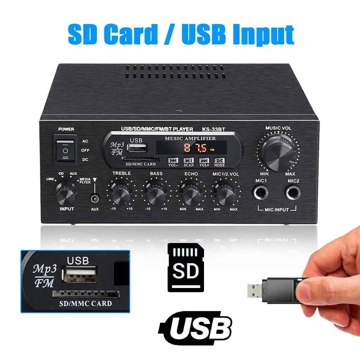 KS-33BT Hi-Fi Цифровой усилитель bluetooth стерео светодиодный цифровой Усилители звука карты памяти USB Aux FM радио 2x450W усилитель