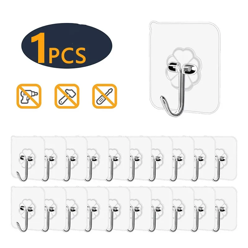 Прозрачные настенные крючки, водонепроницаемые Самоклеящиеся Многоразовые бесшовные крючки для кухни, ванной комнаты, 1 шт.