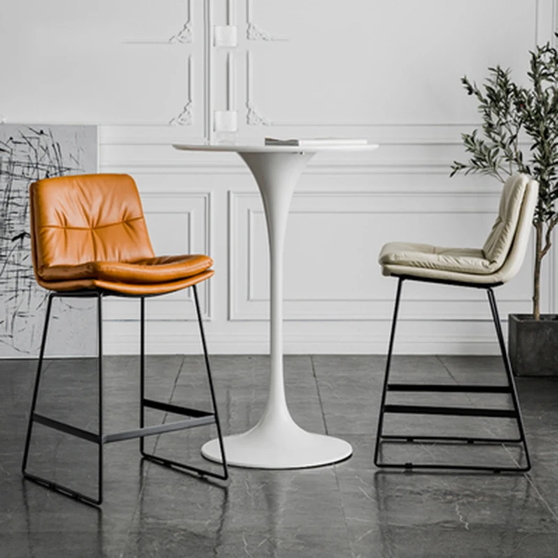 Кресло барное кожаное в скандинавском стиле с подставкой для кофейни, современный простой фланелевый стул