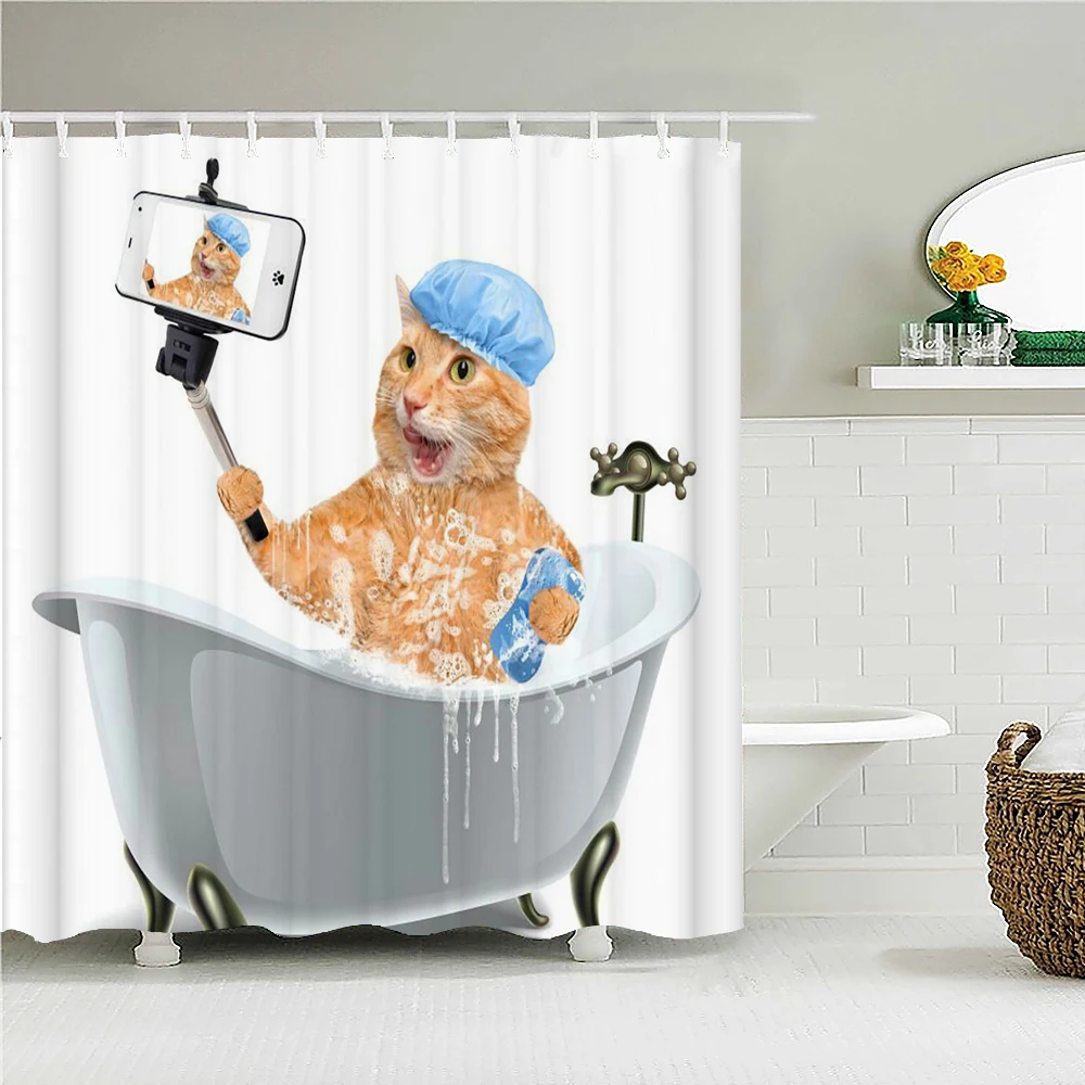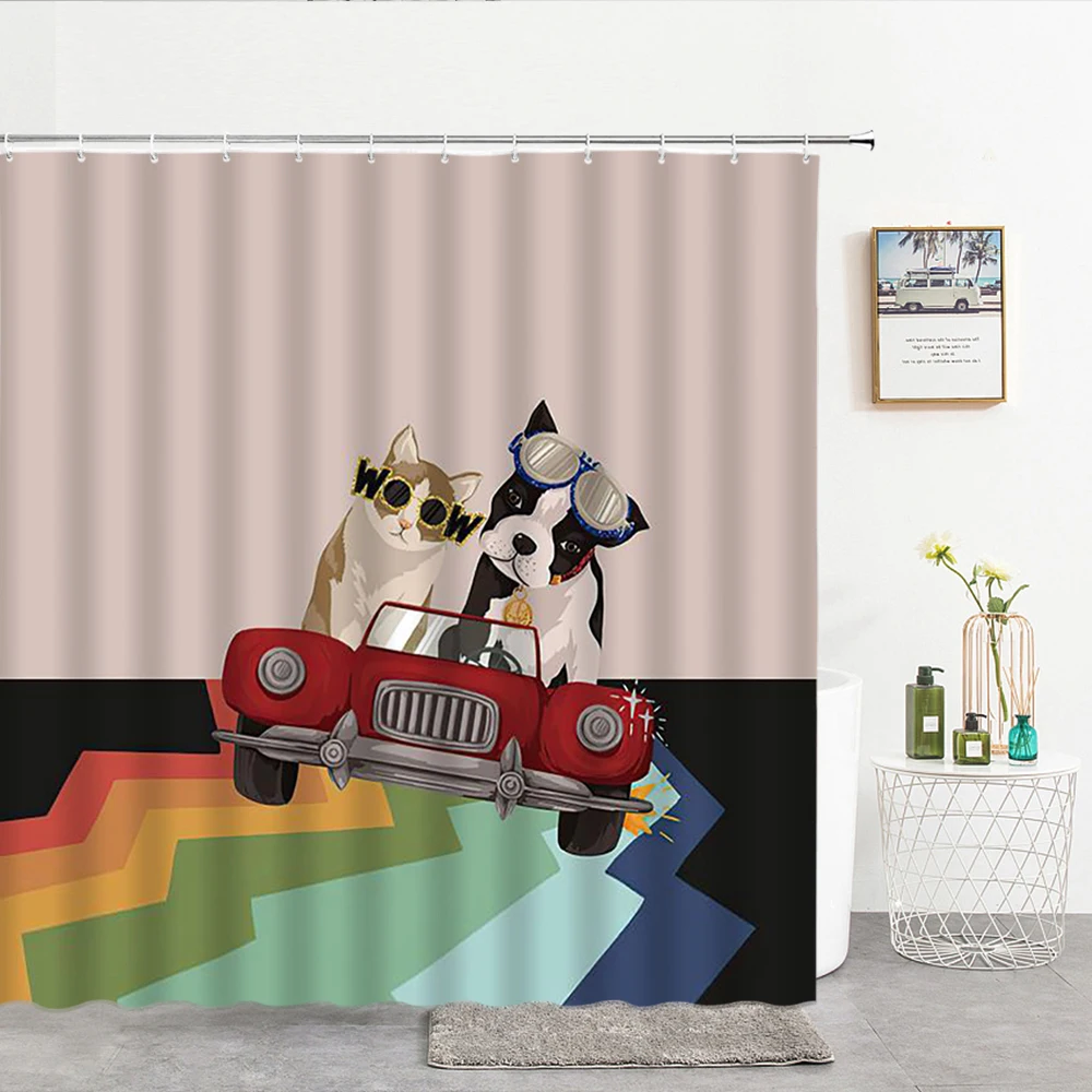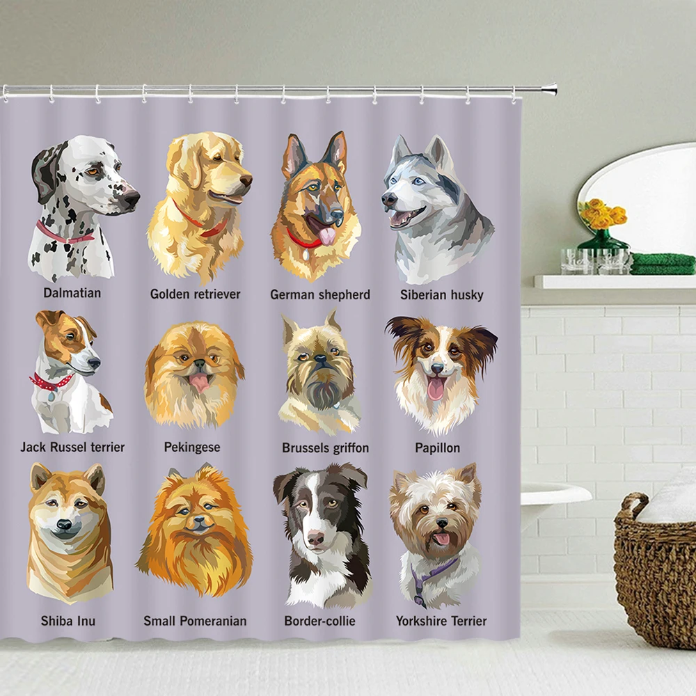 Милые бульдог занавески для душа водонепроницаемые 3d шторы с крючками для ванной Забавный мультяшный Кот Собака Декор для дома моющийся экран для ванной