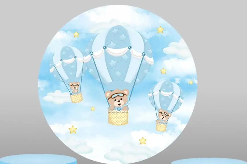 Детский фон с изображением медведя голубого неба круга животного детского дня рождения вечеринки декор Конфеты стол Баннер эластичная виниловая ткань