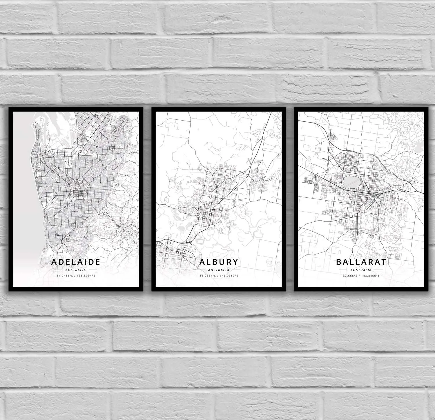 Аделаида, альбури, Балларат, бендиго, Брисбен, бунбери, Банбери, кэрс, Канберра, кофе, Дарвин, гелонг, Карта Австралии, плакат