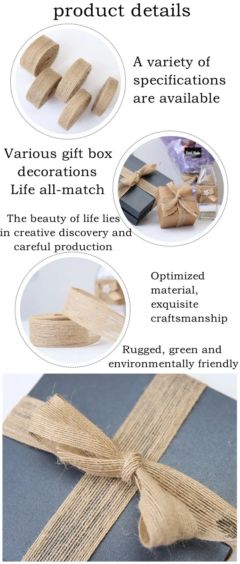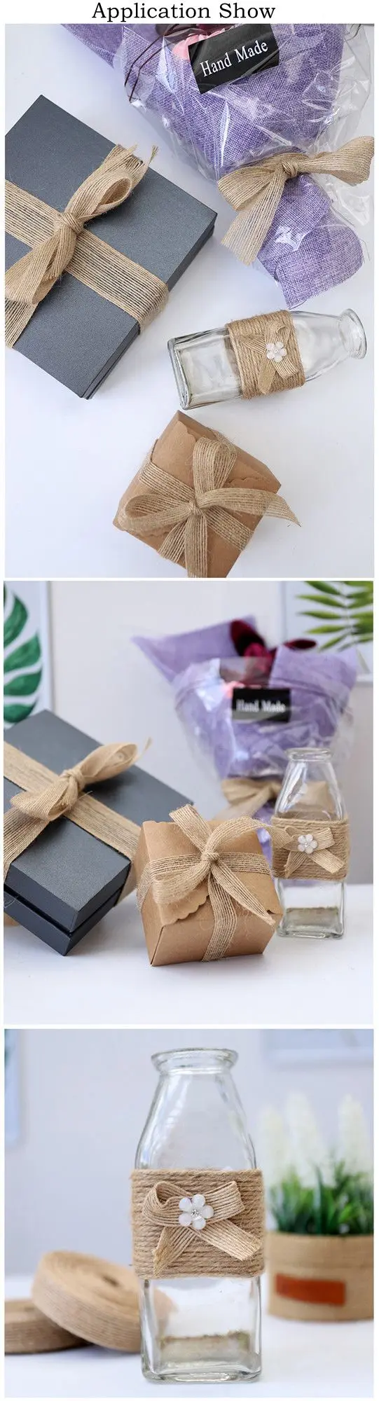 Натуральная джутовая лента, 2 метра, Подарочные банты, ремесла сдел...