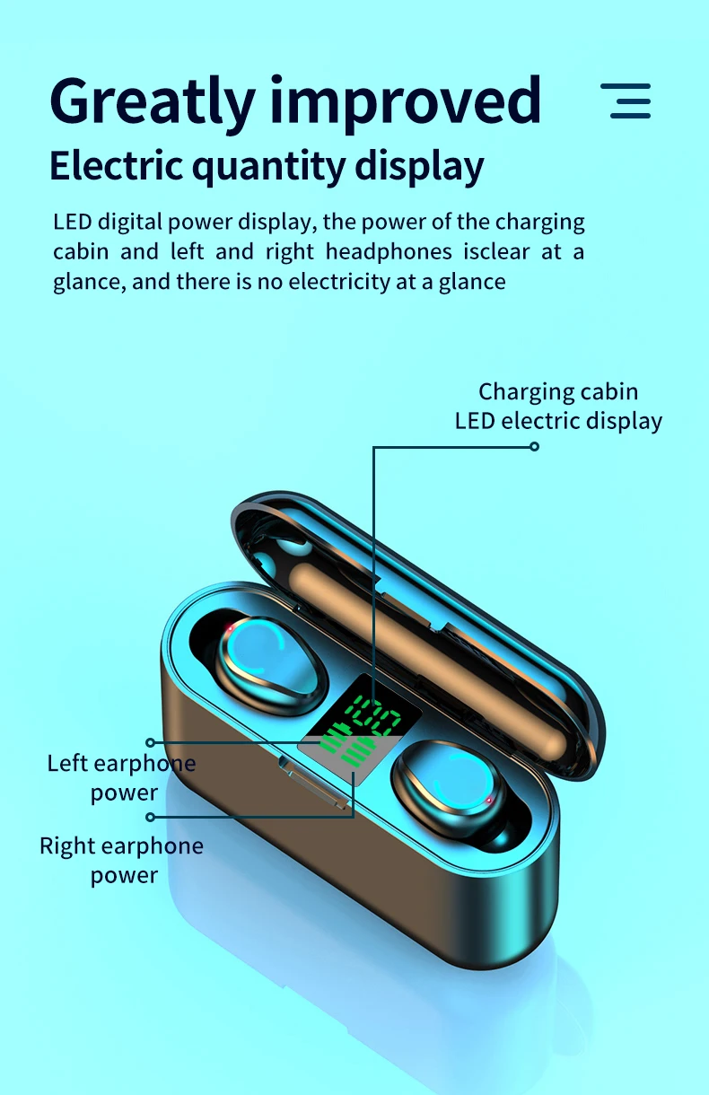 Беспроводные сенсорные Bluetooth-наушники F9-13B TWS, спортивные водонепроницаемые стереонаушники 9D с шумоподавлением, гарнитура с микрофоном