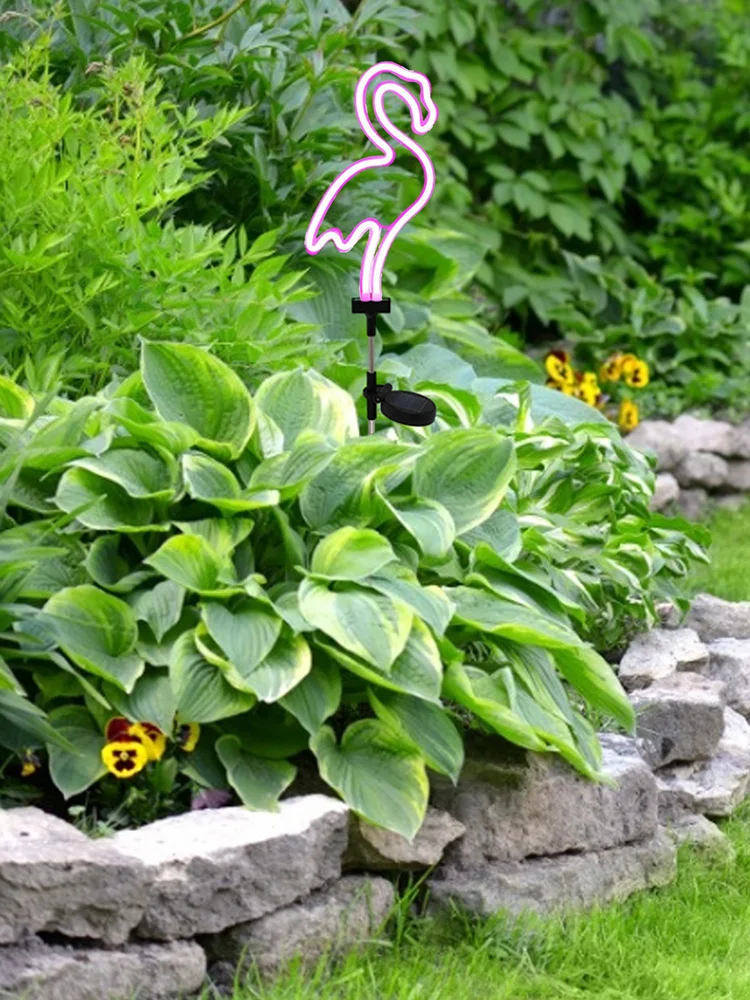 Уличная лампа на солнечной батарее, водонепроницаемый неоновый садовый светильник с высокой имитацией фламинго, декоративная лампа для газона