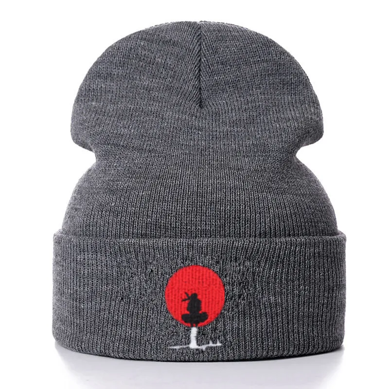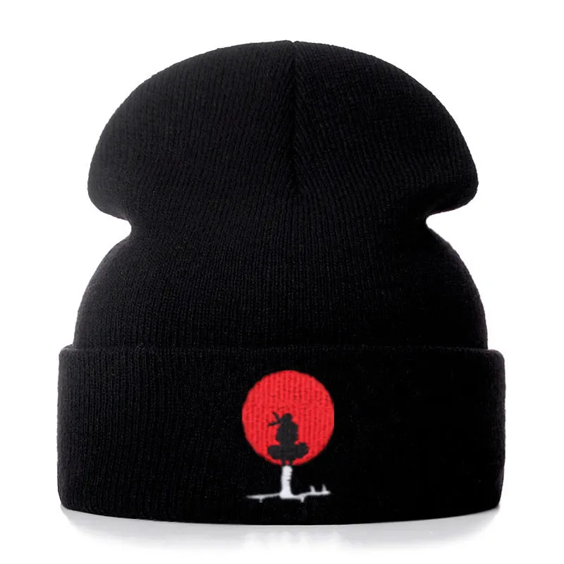Облегающая шапка с вышивкой Наруто, Женская и мужская вязаная тепла...