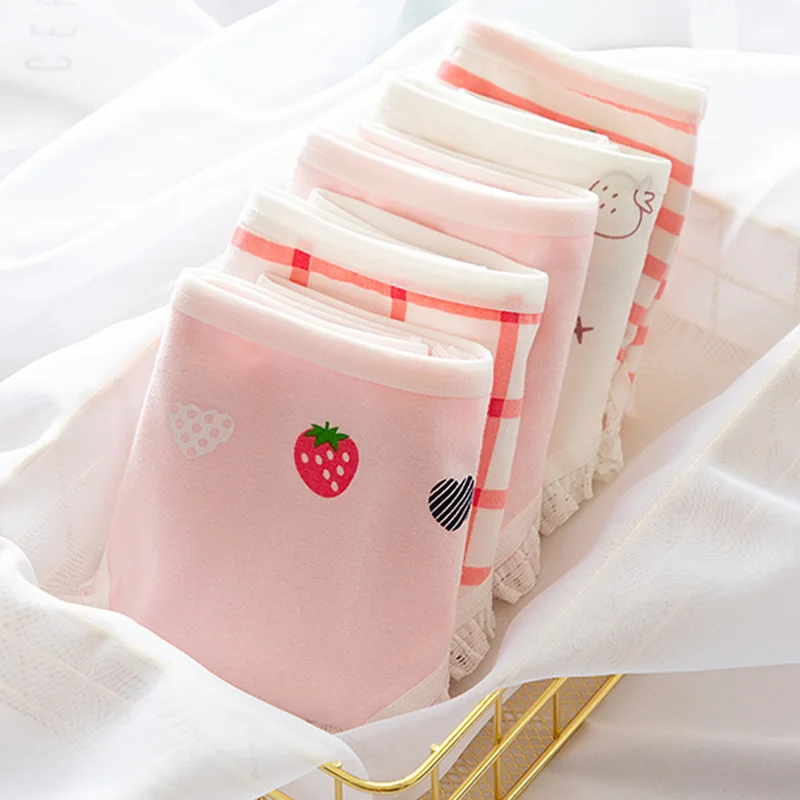Женские трусики, хлопковые трусики высокого качества, модные сексуальные кружевные женские трусики клубничного цвета, дышащее нижнее белье, женское нижнее белье со средней талией