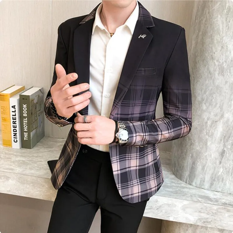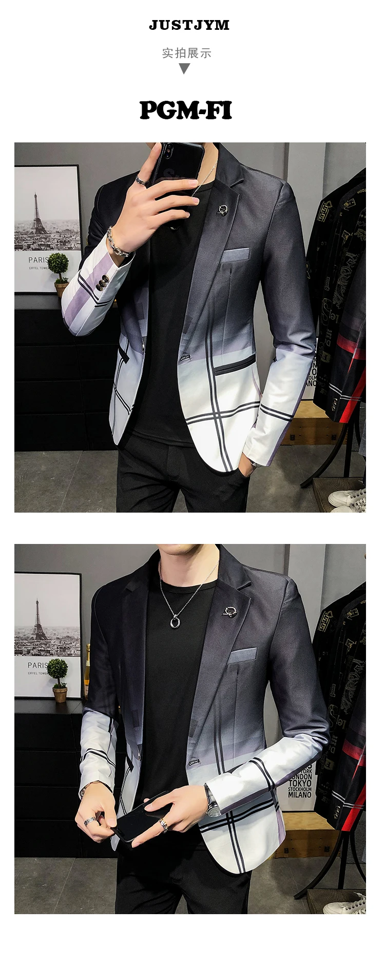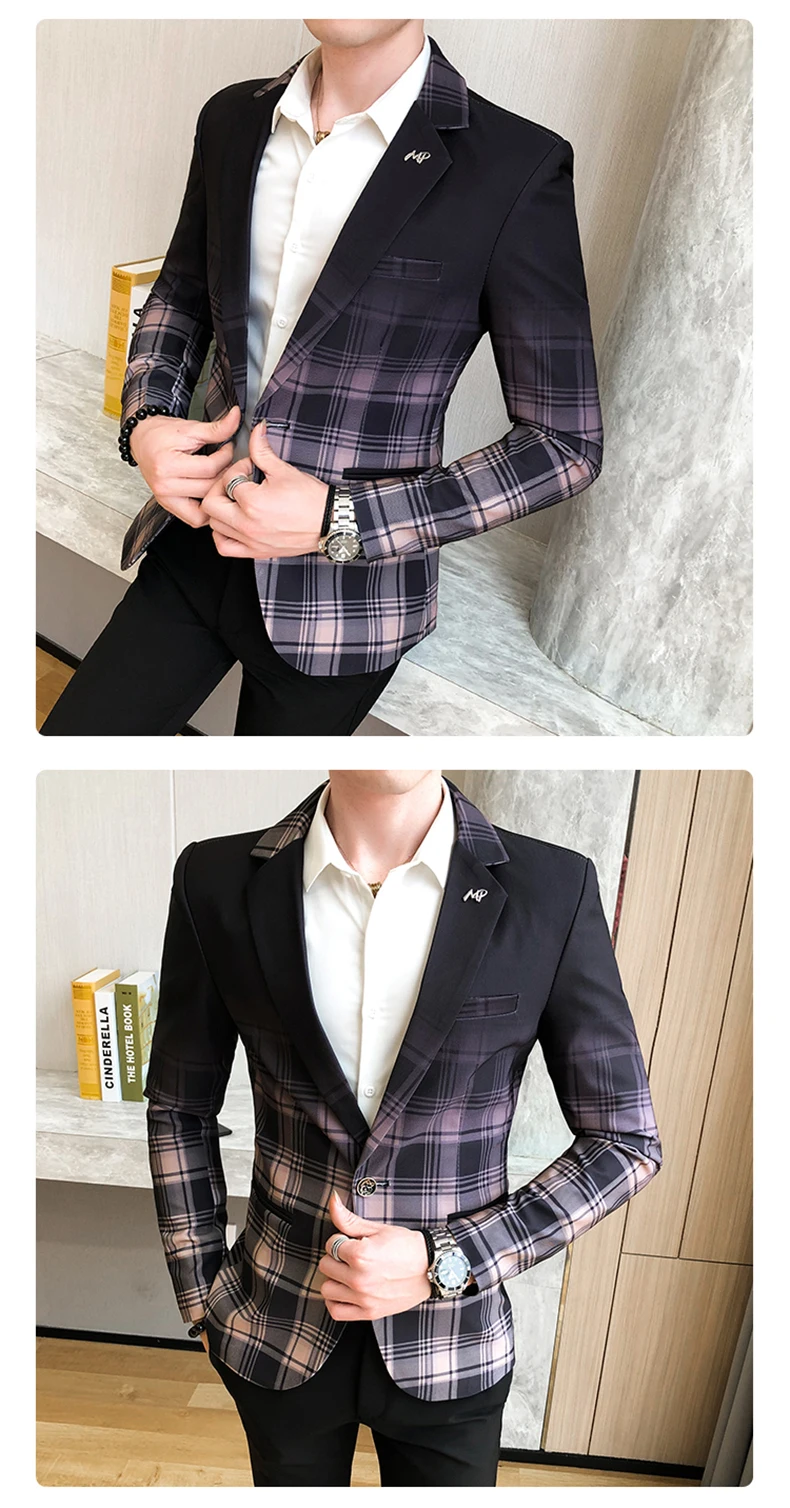 Весна 2021, мужской Клетчатый Блейзер, Модный деловой Повседневный Мужской приталенный пиджак, Повседневное платье большого размера для банкета, свадьбы, вечеринки, клуба