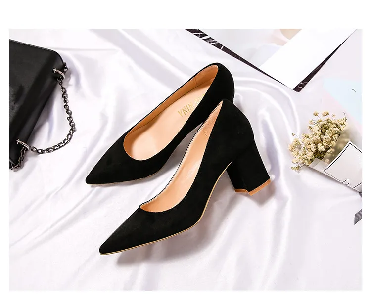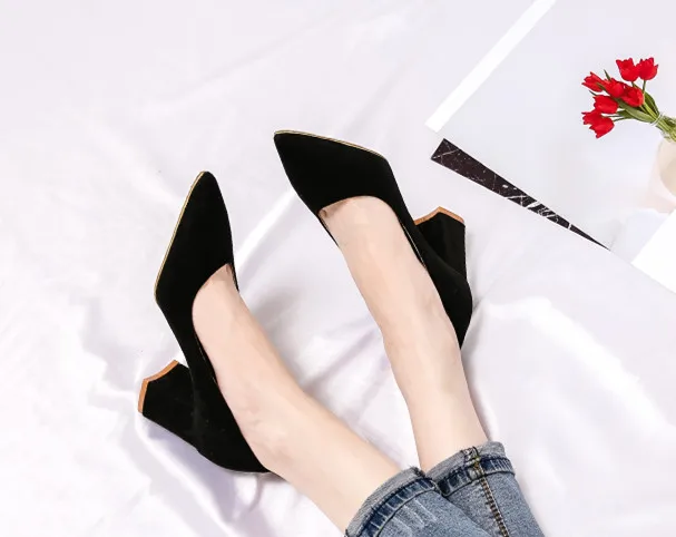 Женские замшевые туфли-лодочки, с острым носком, на квадратном кабл...