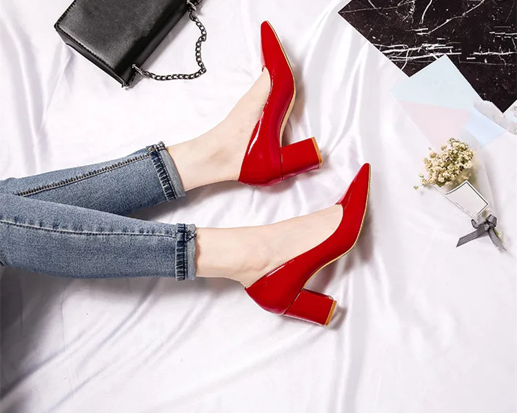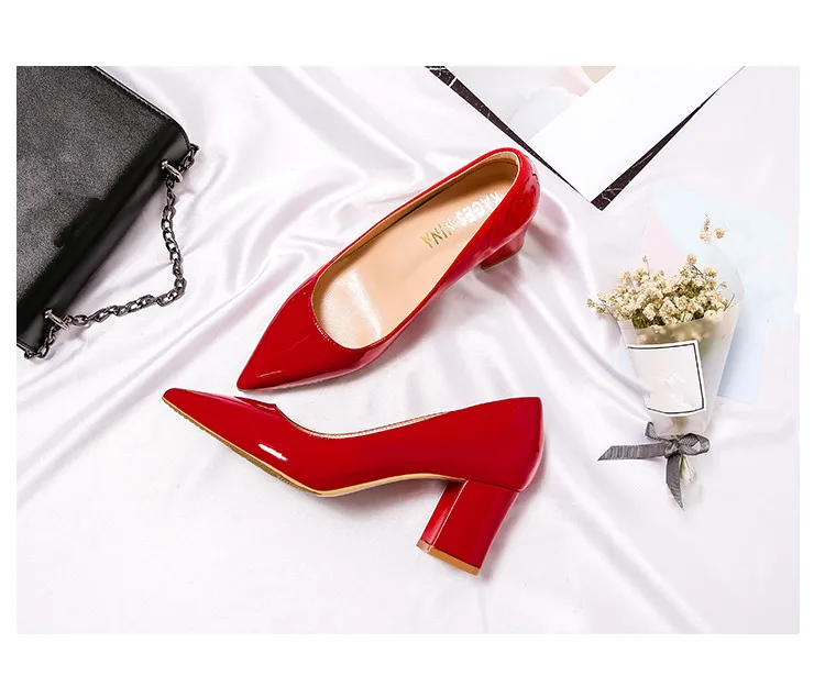 Новинка 2021 года; Элегантные туфли-лодочки из лакированной кожи с острым носком на высоком толстом каблуке с леопардовым принтом; Лидер продаж; Женская рабочая обувь