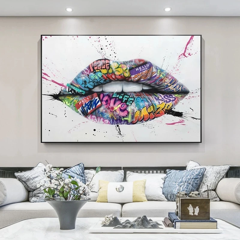 Современный абстрактный художественный Рисунок зубы губы Улица граффити Художественная Картина на холсте плакаты и принты для гостиной Декор картины