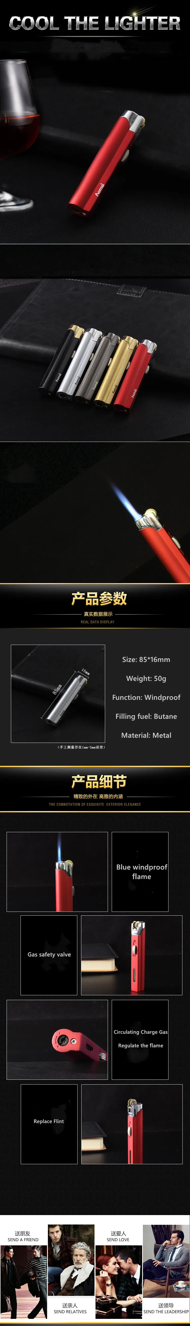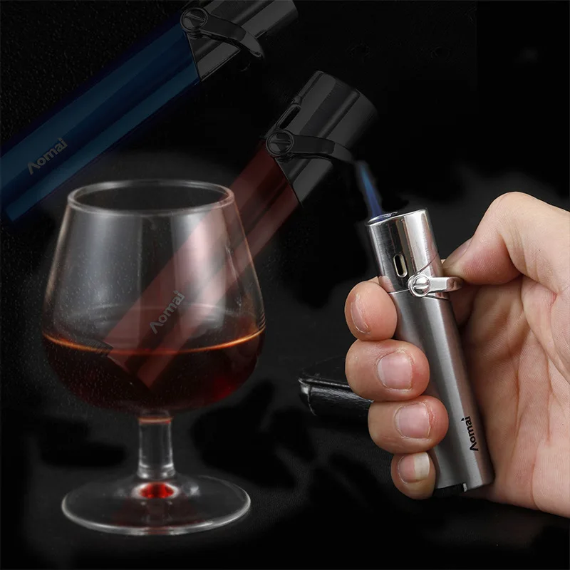Металлическая длинная синяя ветрозащитная фонарь, креативная турбоциркуляционная газовая зажигалка, аксессуары для сигар, гаджеты для мужчин