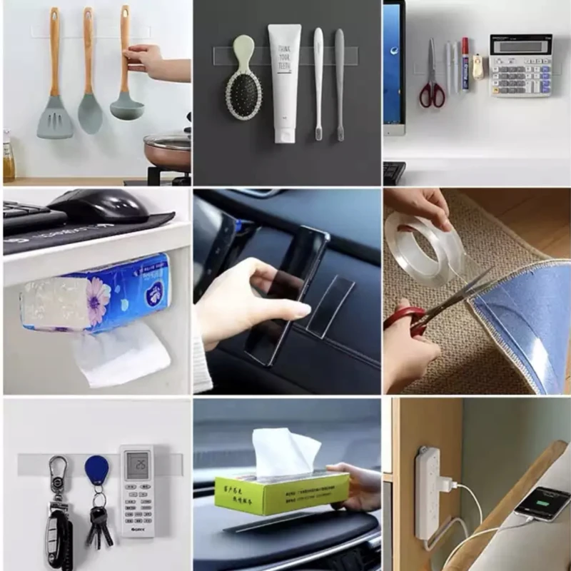 Нано-клейкая лента-это многоразовая Двусторонняя лента, изготовленная из уникального экологически чистого полиуретанового геля, который может быть повторно наклеен и не оставляет следов на изделии, когда он очищается, он может отлично работать в диапазоне температур от-20 ℃ до 120 ℃.
