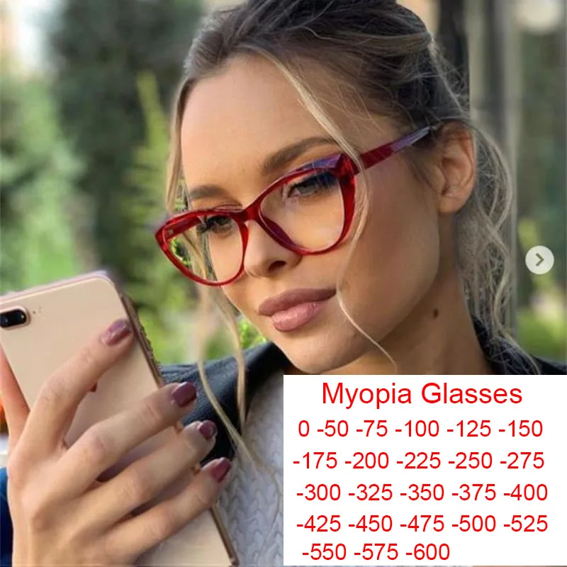 Модные компьютерные очки кошачий глаз по рецепту очки для близоруких для женщин от-1,5 до 3 с защитой от синего света