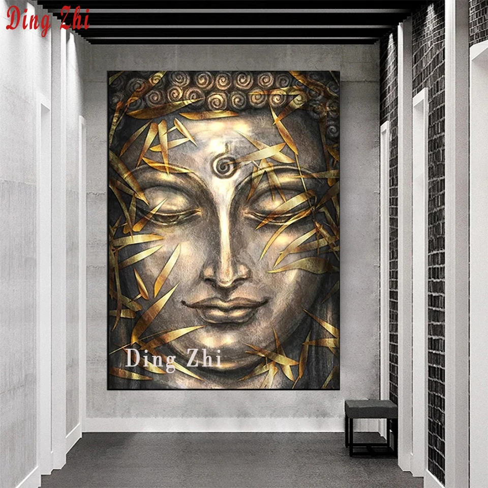 5D алмазная вышивка золотой бамбуковый лист статуя Будды DIY Алмазная картина религия Алмазная мозаика полностью квадратная круглая рукоделие