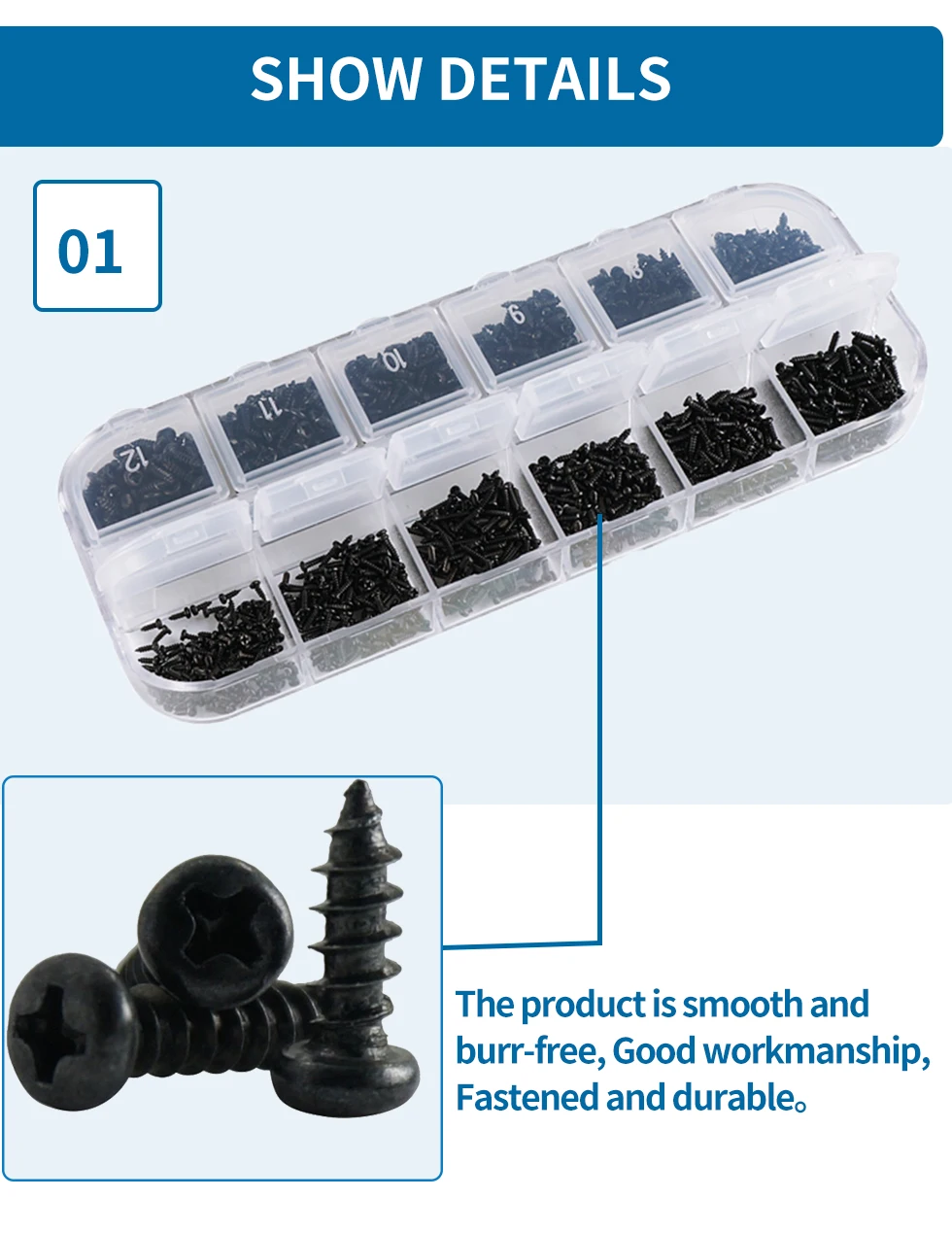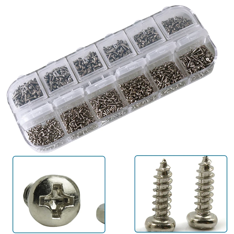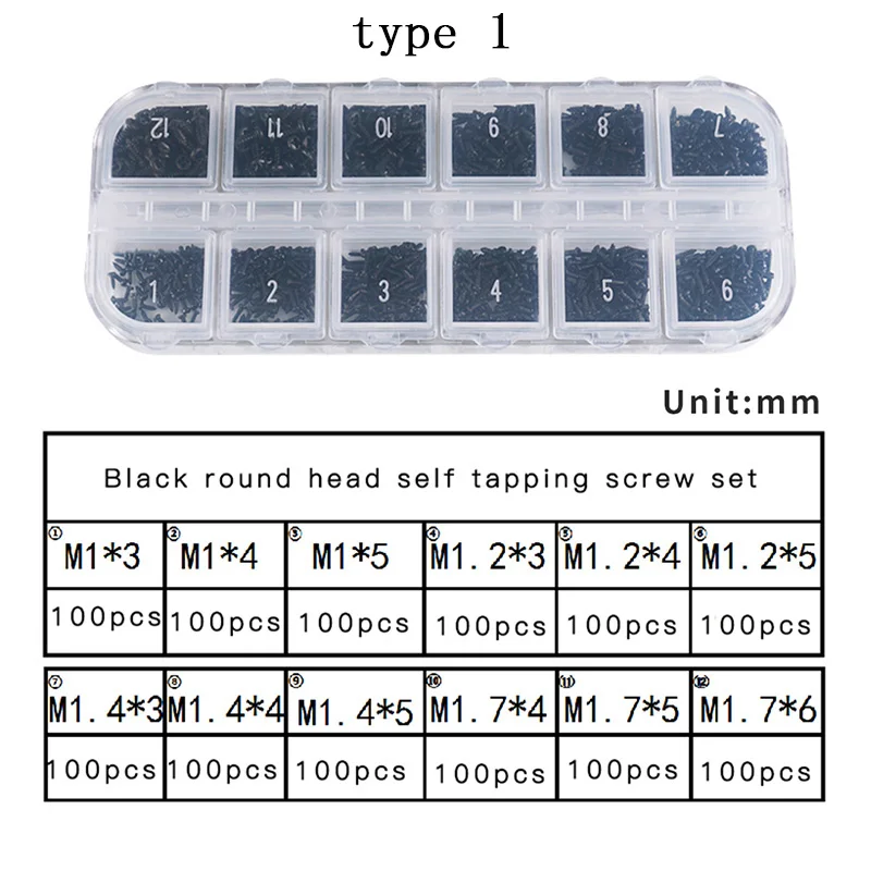 Винты Micro для очков, набор самонарезающих электронных небольших винтов для дерева с круглой головкой, гвозди, набор винтов для ПК 1200 шт.компл. M1 M1.2 M1.4 M1.7