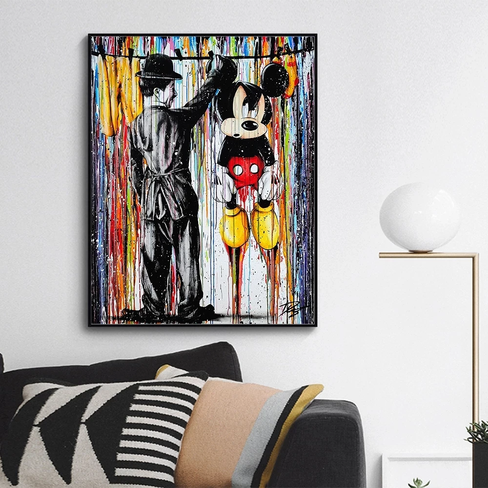 Disney Микки Мышь стены граффити Печать на холсте рисунок животных рисунков в виде изображение граффити для Гостиная домашний декор плакат без рамки