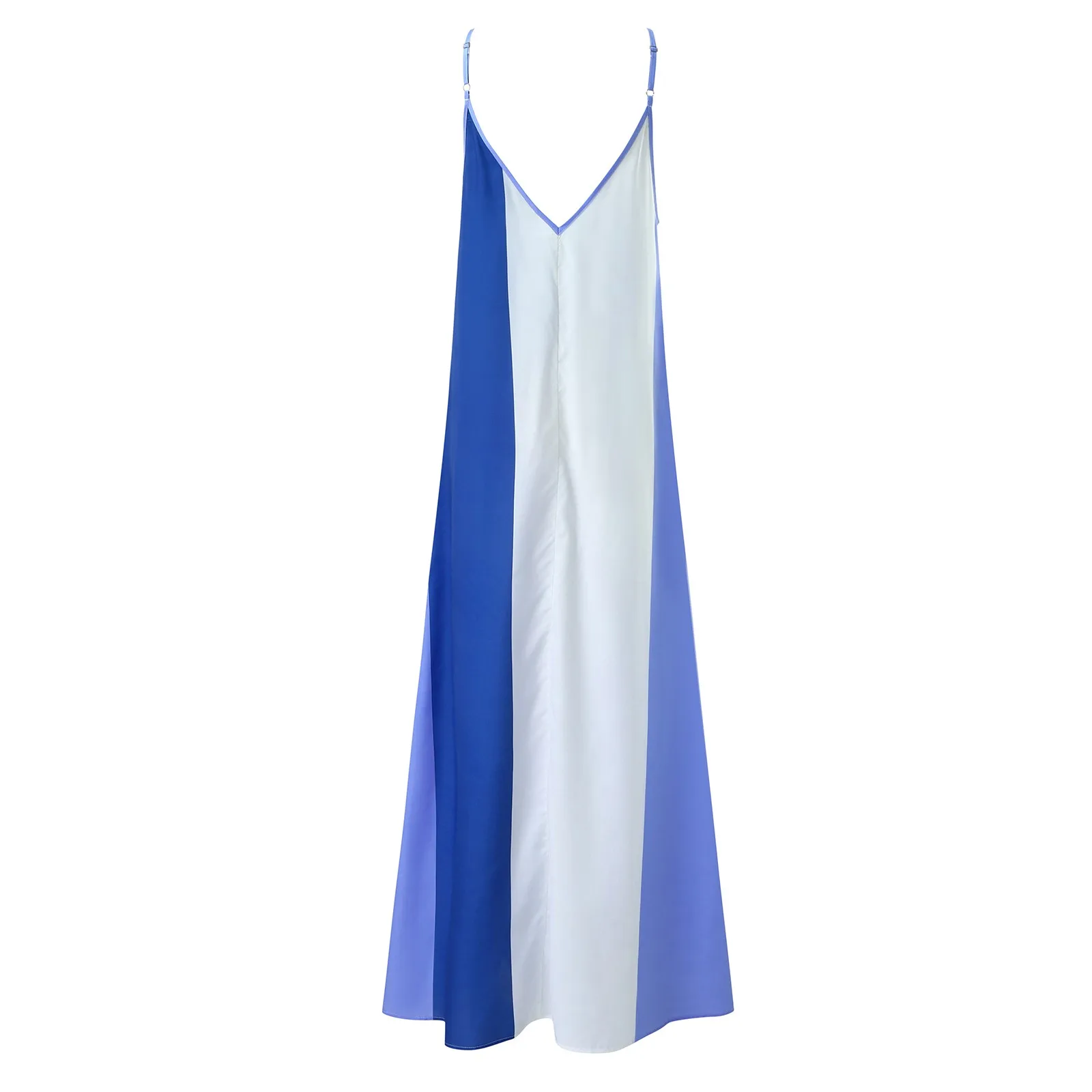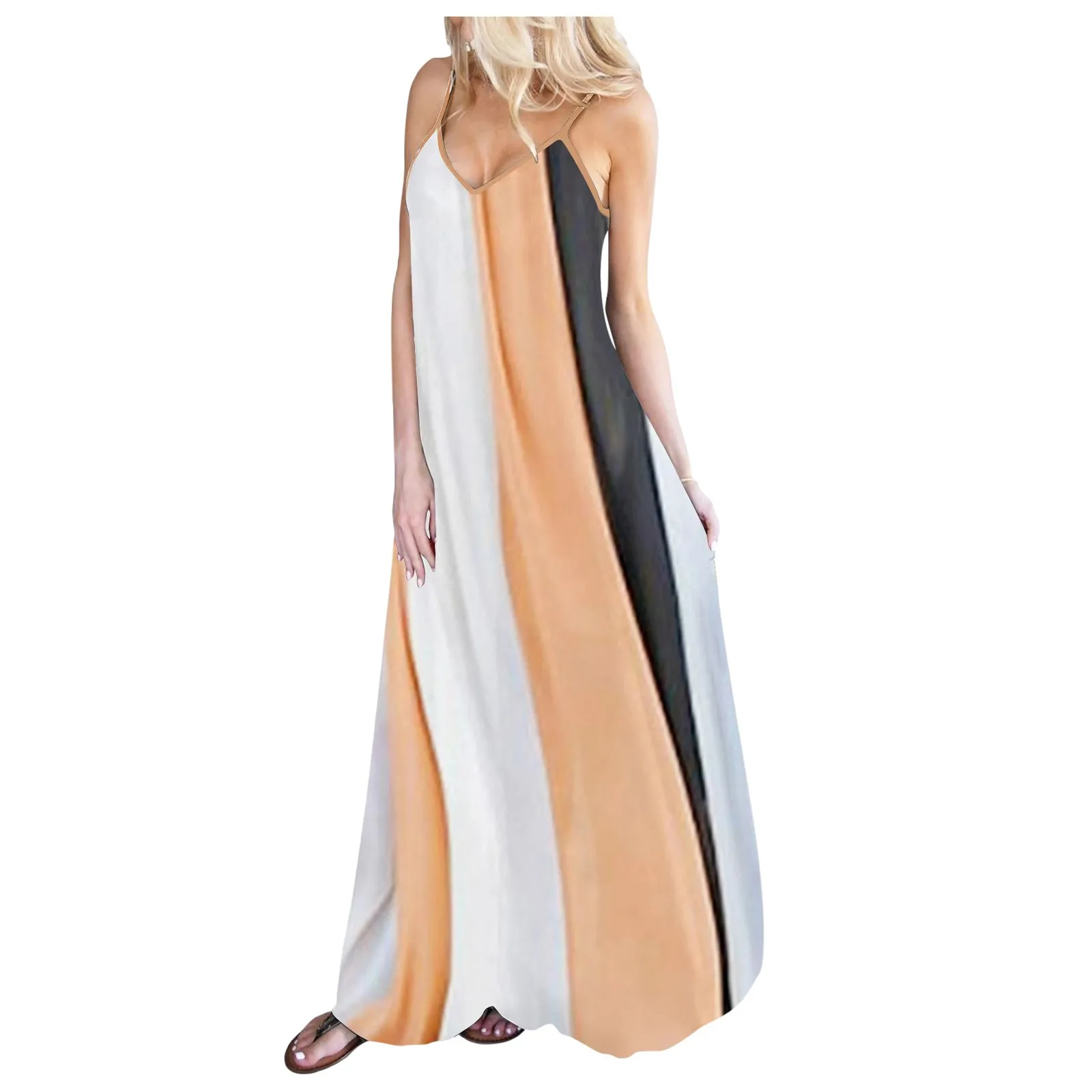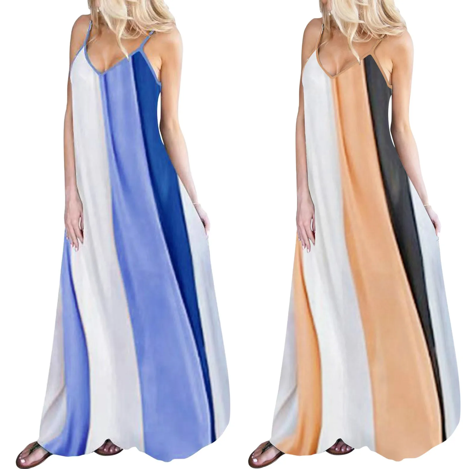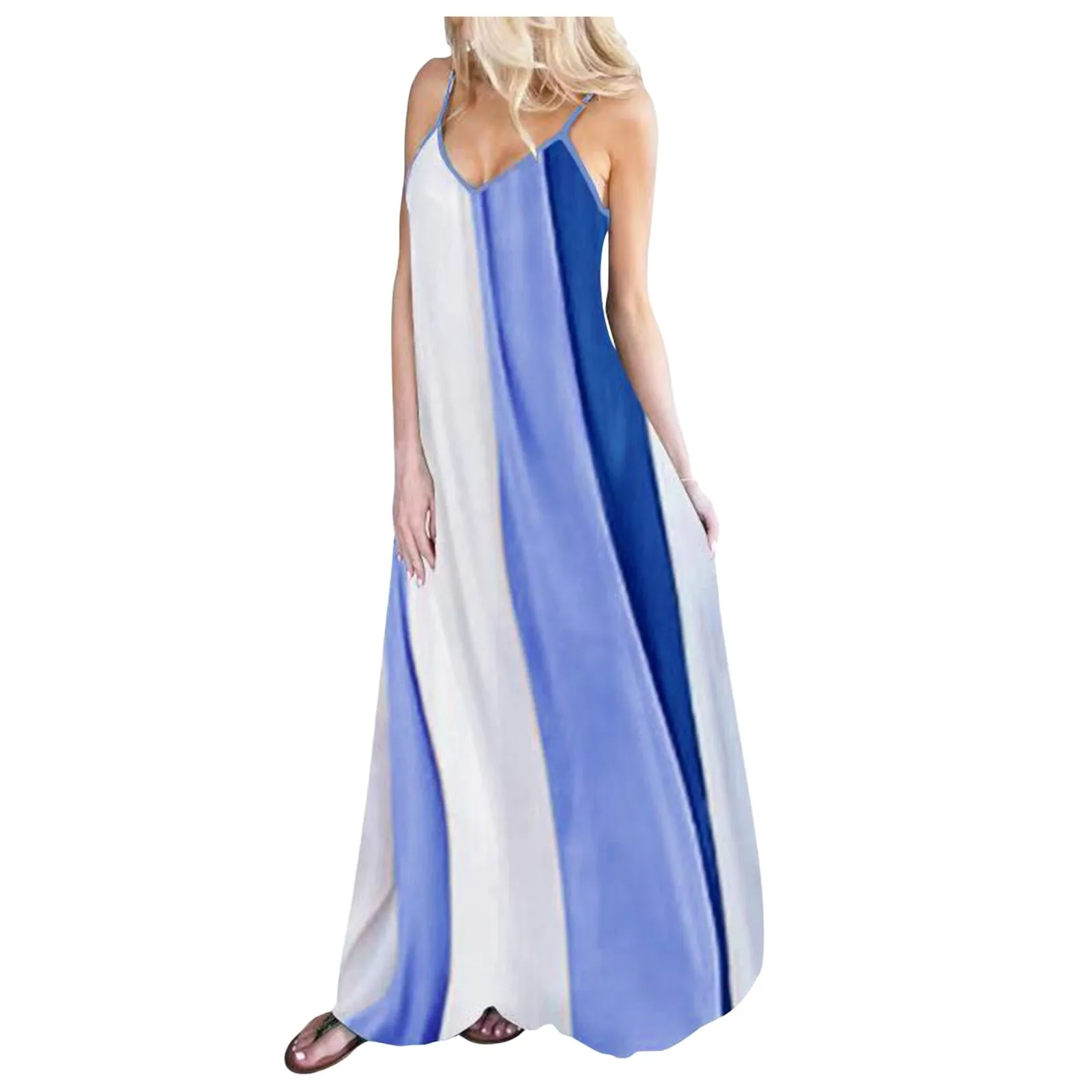 Женское повседневное однотонное Свободное платье с v-образным вырезом на бретелях, длинное платье