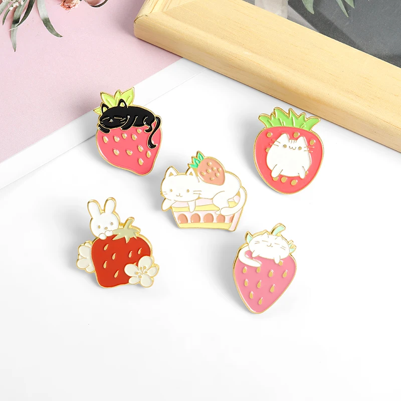 Эмалированная заколка в виде кошки-клубники, значки в виде милого т...
