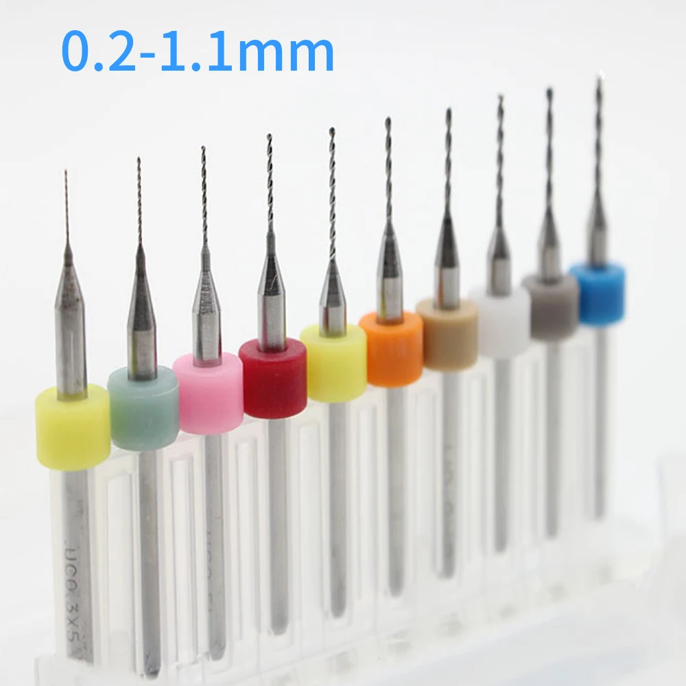 Набор сверл 0,2-1,1 мм для печатной платы, карбидные спиральные сверла с микро ЧПУ для янтарного алюминиевого листа
