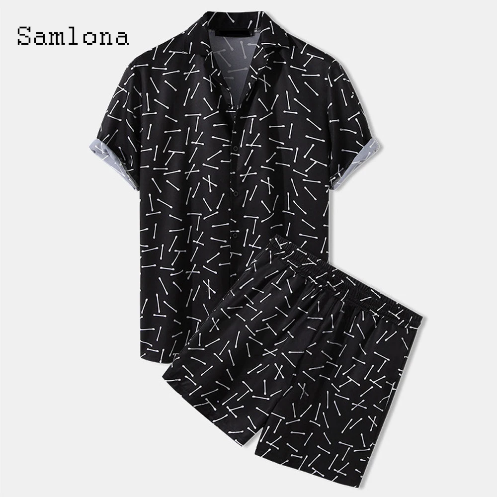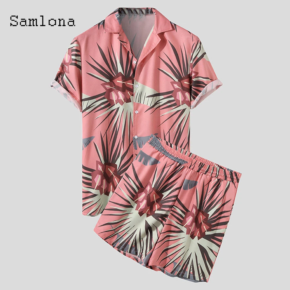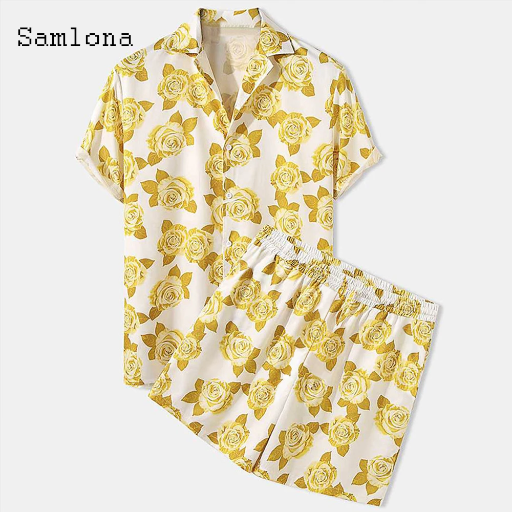 Мужской комплект одежды Samlona, из двух предметов, легкая пляжная одежда с цветочным принтом, размеры 3xl, размера плюс