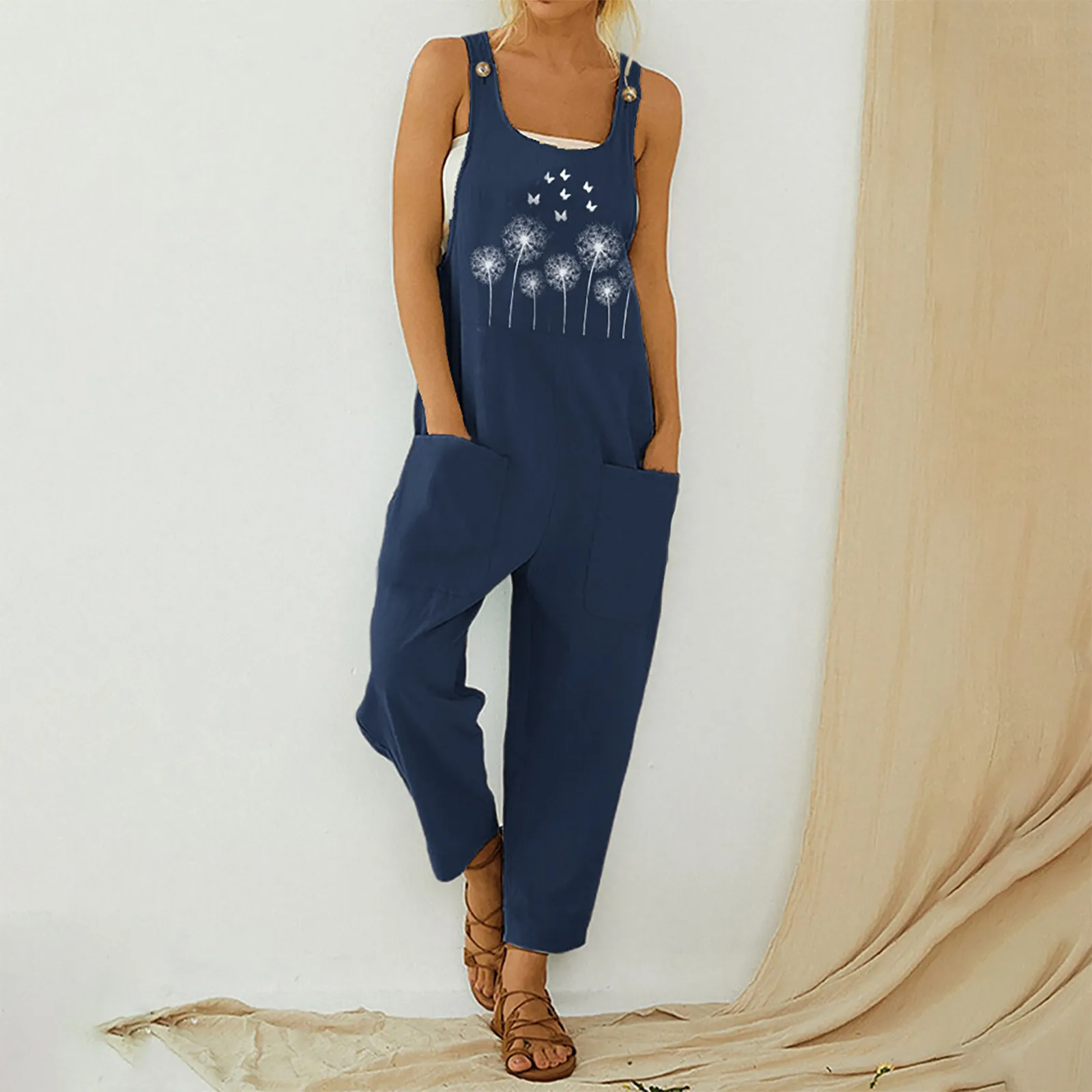 Женские повседневные свободные элегантные Рабочие Комбинезоны 2021, модные облегающие пляжные комбинезоны без рукавов с цветочным принтом одуванчика