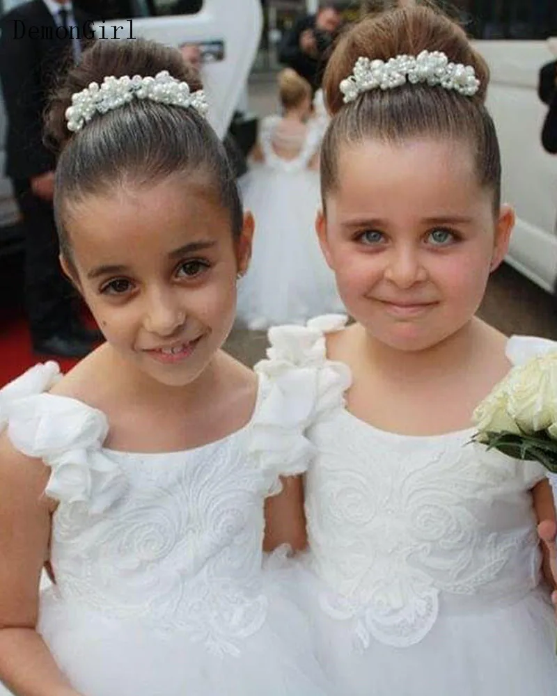 Новинка, белое Цветочное платье для девочек, бальное платье, кружев...