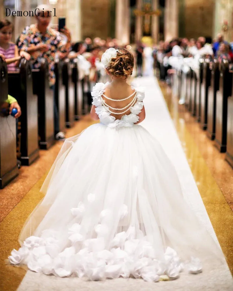 Тюлевые платья для девочек, белые, с перьями и цветами, пышные плат...