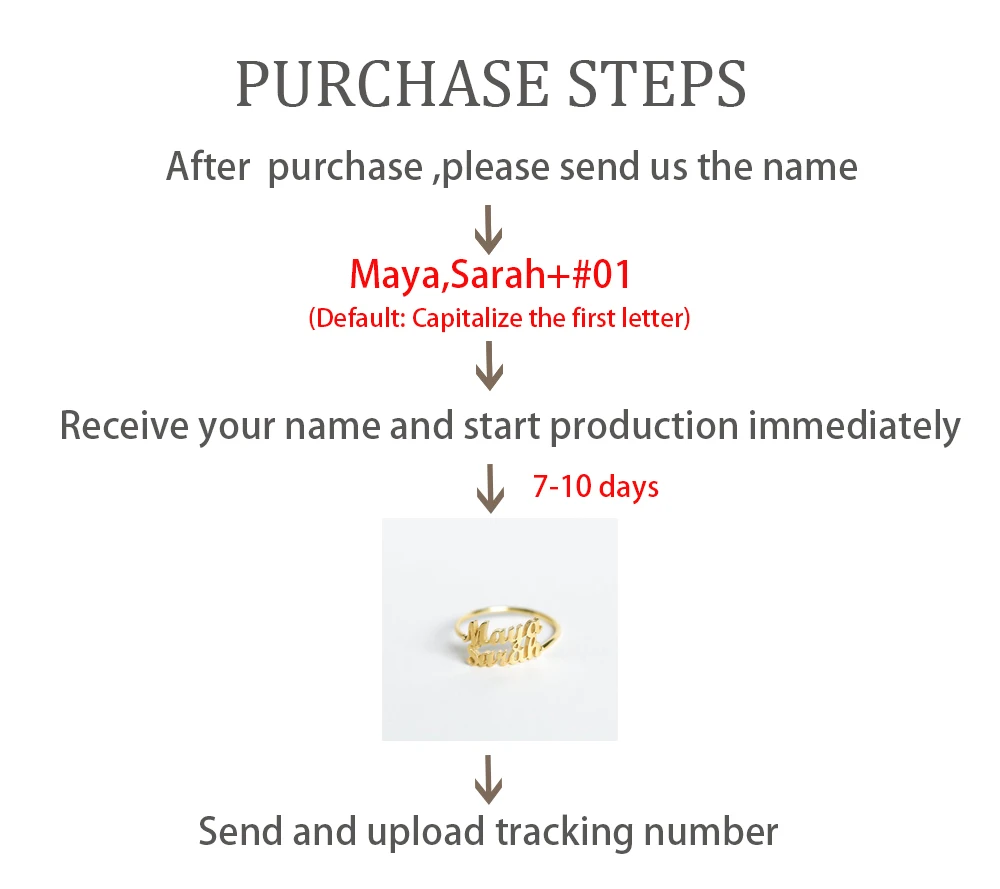 Пожалуйста, пришлите нам имя и шрифт, которые вы хотите заказать.Если вы не дадите нам имя и шрифт по индивидуальному заказу, мы свяжемся с вами. Если вы все еще не отвечаете через три дня, мы сделаем кольцо в соответствии с именем вашего получателя и отправим его.Вы не можете отменить ваш заказ в течение 12 часов, потому что мы уже начали производство и надеемся получить ваше пониманиеУ нас есть собственная Производственная фабрика, если вам нужна оптовая или Прямая поставка, пожалуйста, свяжитесь с нами.