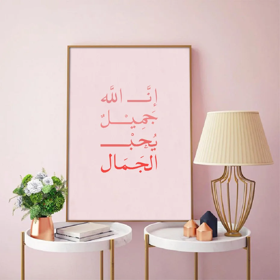 Аллах красивый любит Красота каллиграфия Исламская Wall Art Печать холст картины Плакаты для Спальня домашний декор
