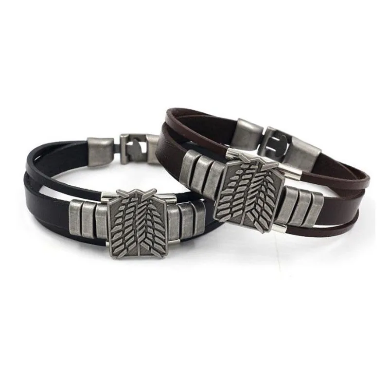 Браслет с шармами атака на Титанов, аниме безделушка, ювелирное изделие, браслеты-манжеты, кожаный мужской и женский браслет в стиле панк