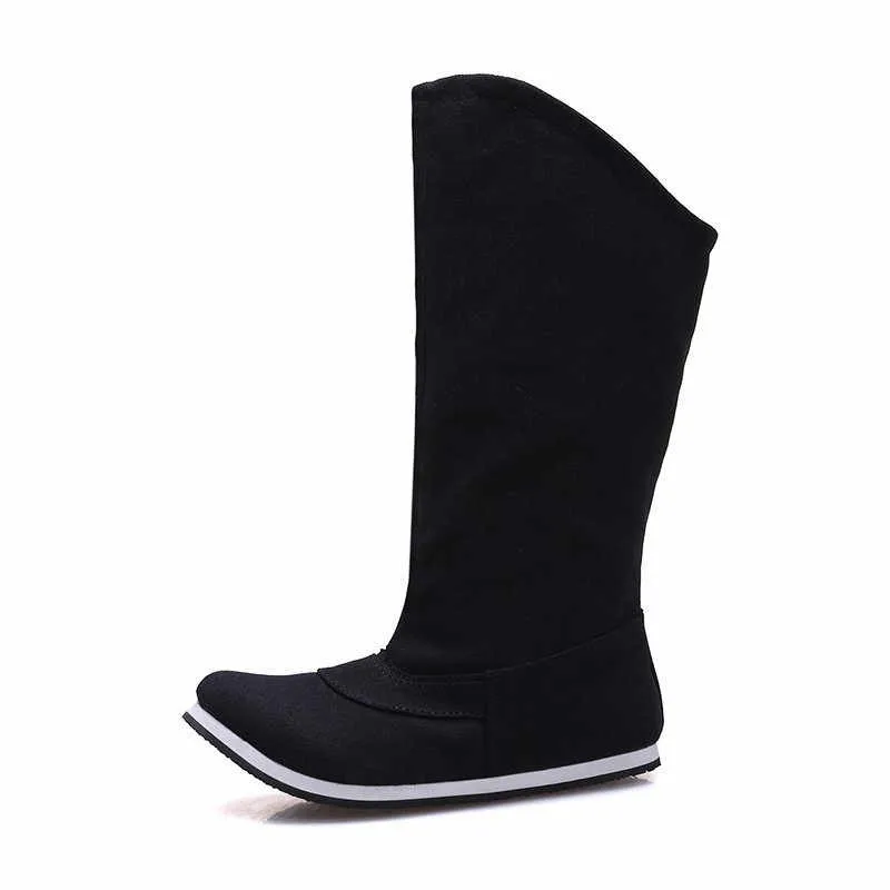 Зимние плюшевые сапоги до колена, женские черные кожаные боевые сап...
