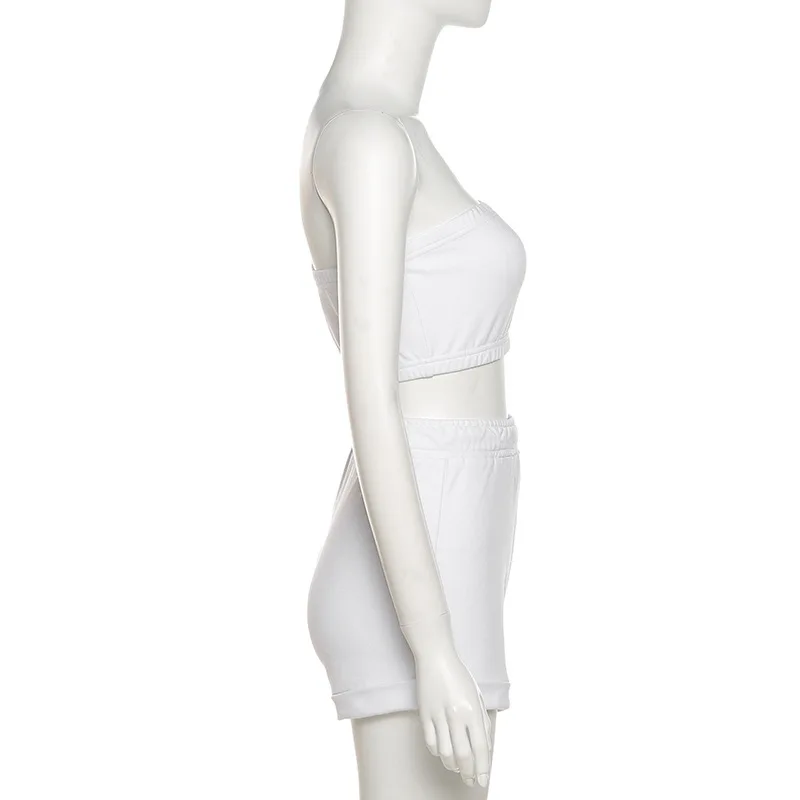 Комплект Спортивный женский из двух предметов, топ без рукавов и эластичные шорты на шнурке, Повседневный хлопковый комплект спортивной одежды для девушек, 2021