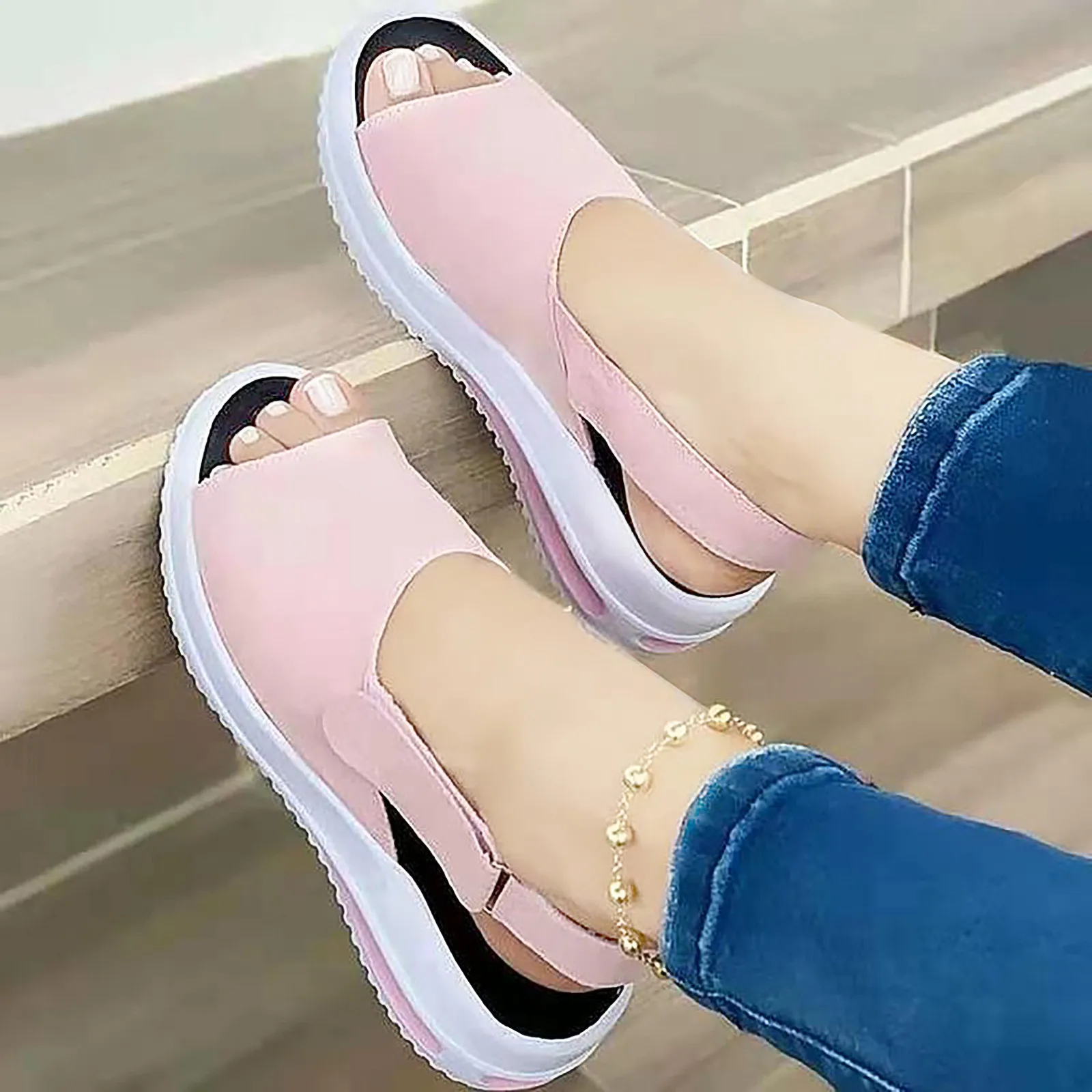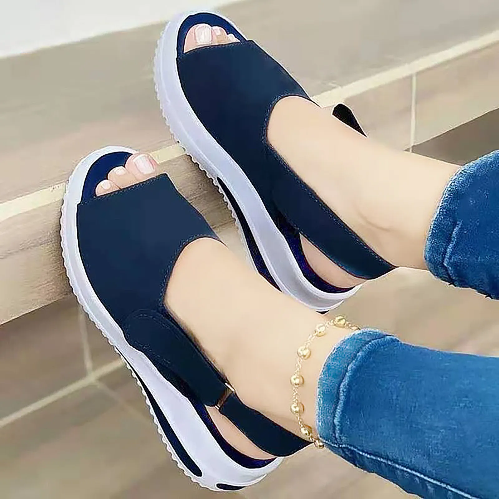 Сандалии с открытыми пальцами женская летняя обувь 2021 на танкетке большие Размеры с закрытым носком туфли-сандалии туфли на платформе однотонные Цвет сандалии