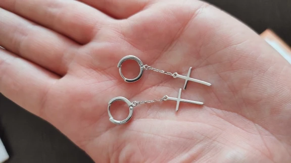 Женские серьги-гвоздики из серебра 925 пробы с крестом и короной