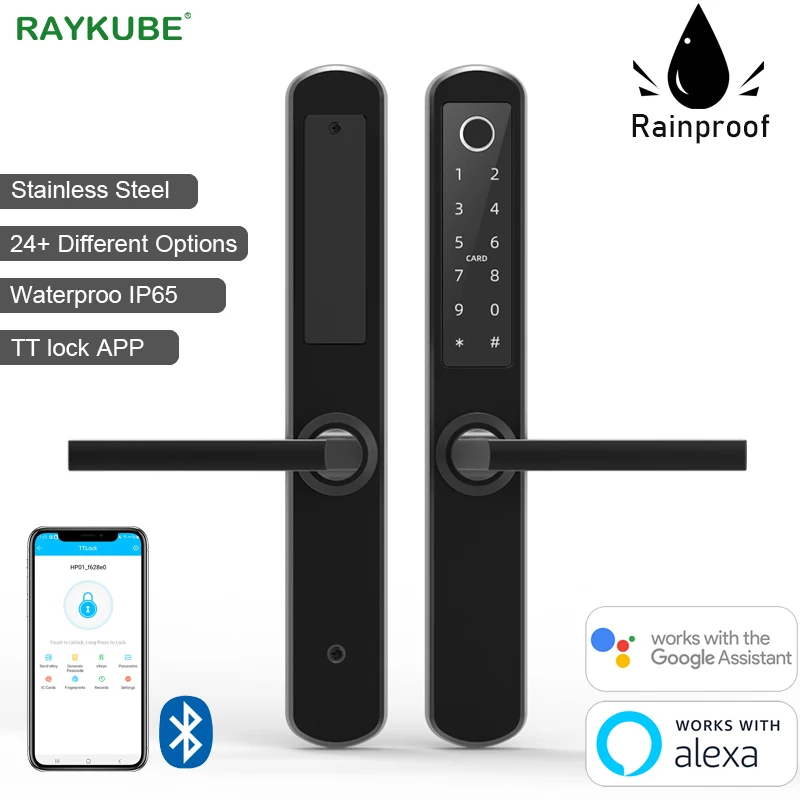 RAYKUBE водонепроницаемый Интеллектуальный Дверной замок Bluetooth TTlock приложение отпечатков пальцев пароль IC Card Key 304 Нержавеющая сталь Черный DQ03