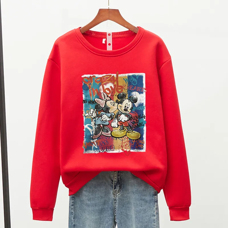 Disney аниме Микки Толстовка с изображением мыши женская одежда для пары весна осень новый длинный рукав флис 15 цветов Минни Маус Hoddie