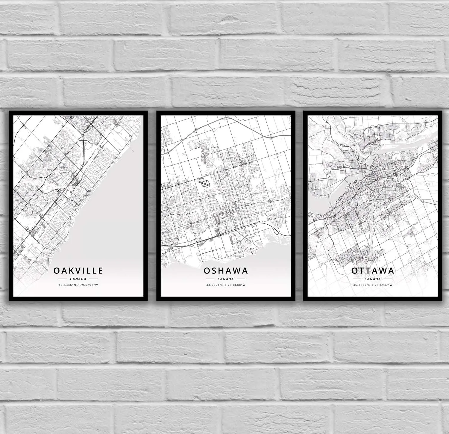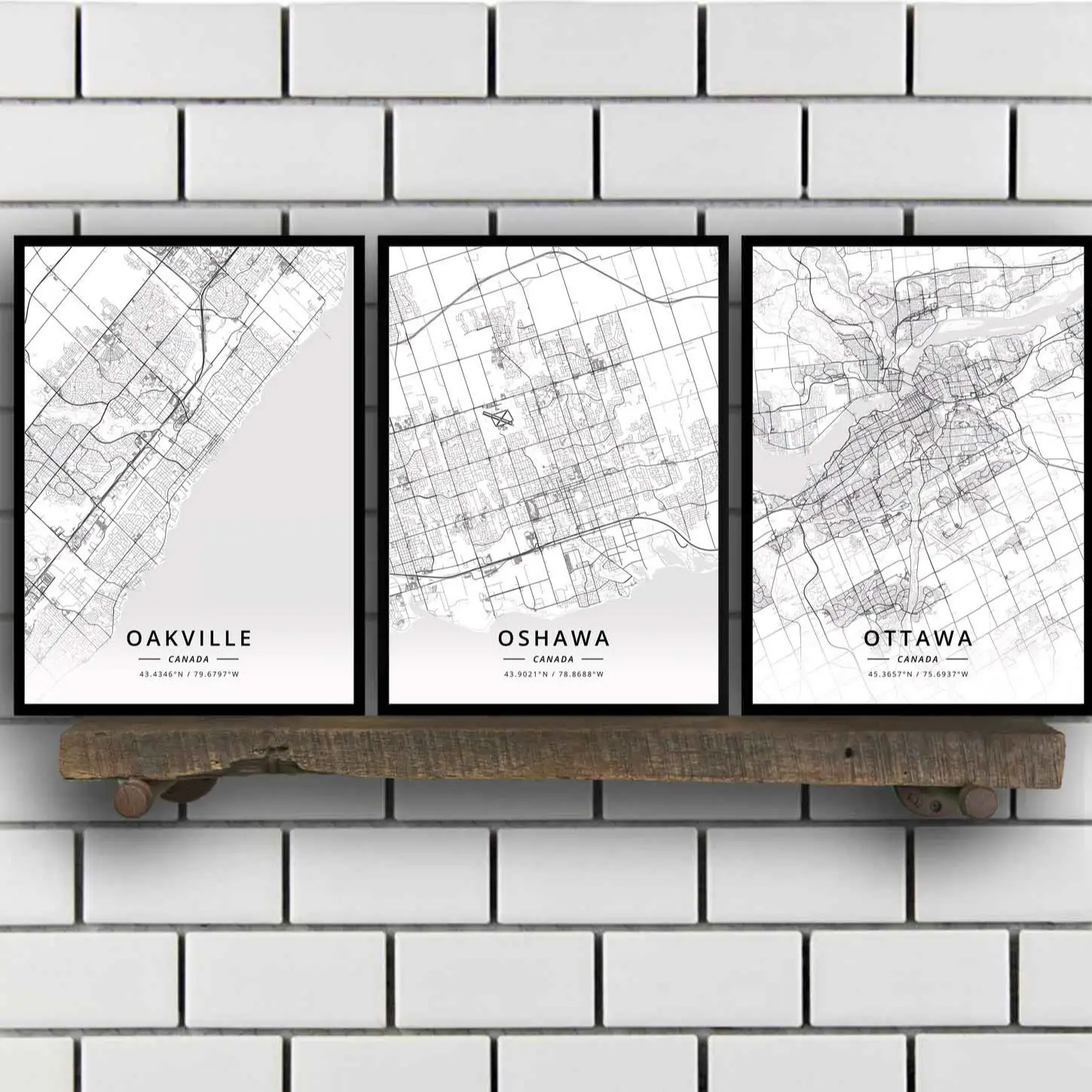 Oakville Oshawa Оттава, Квебек, Ричмонд, Ричмонд, Саскатун, Шербрук, ст-Катаринс, Суррей, карта канады, плакат